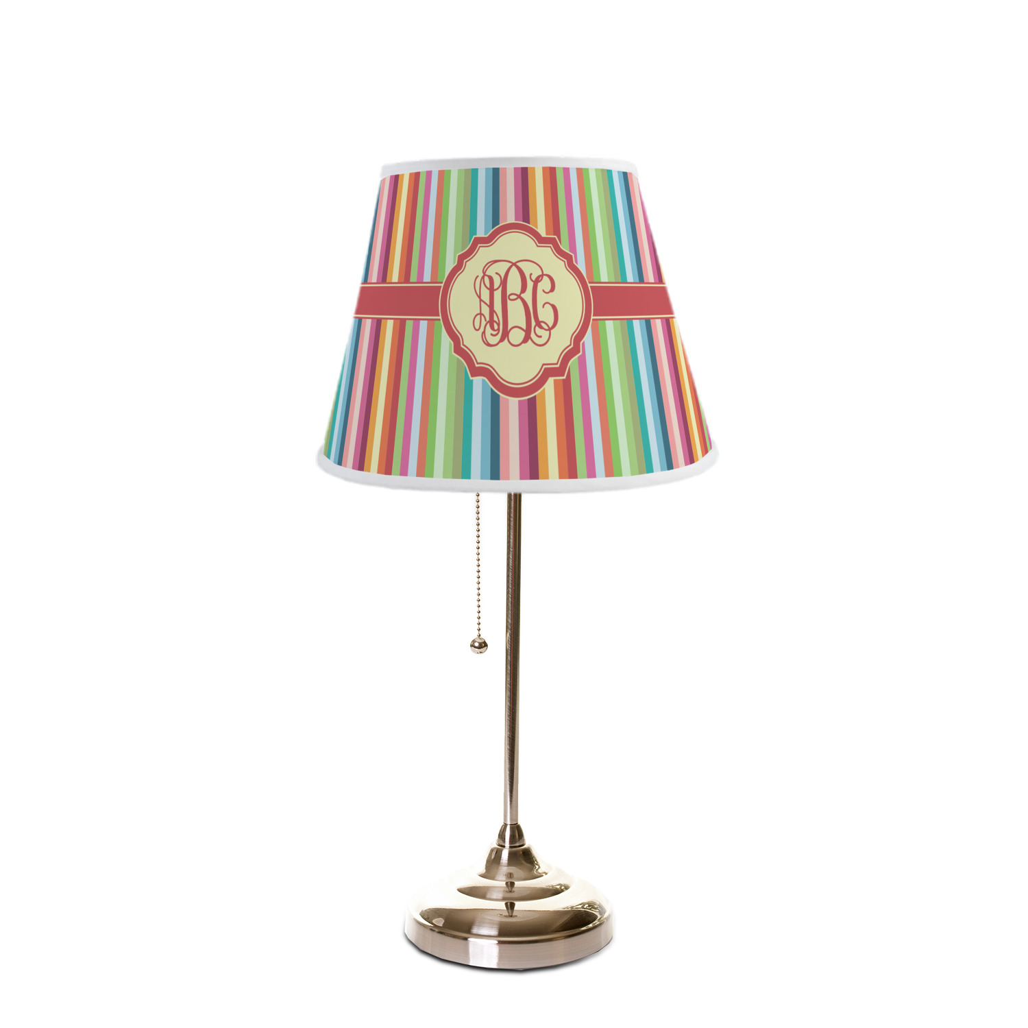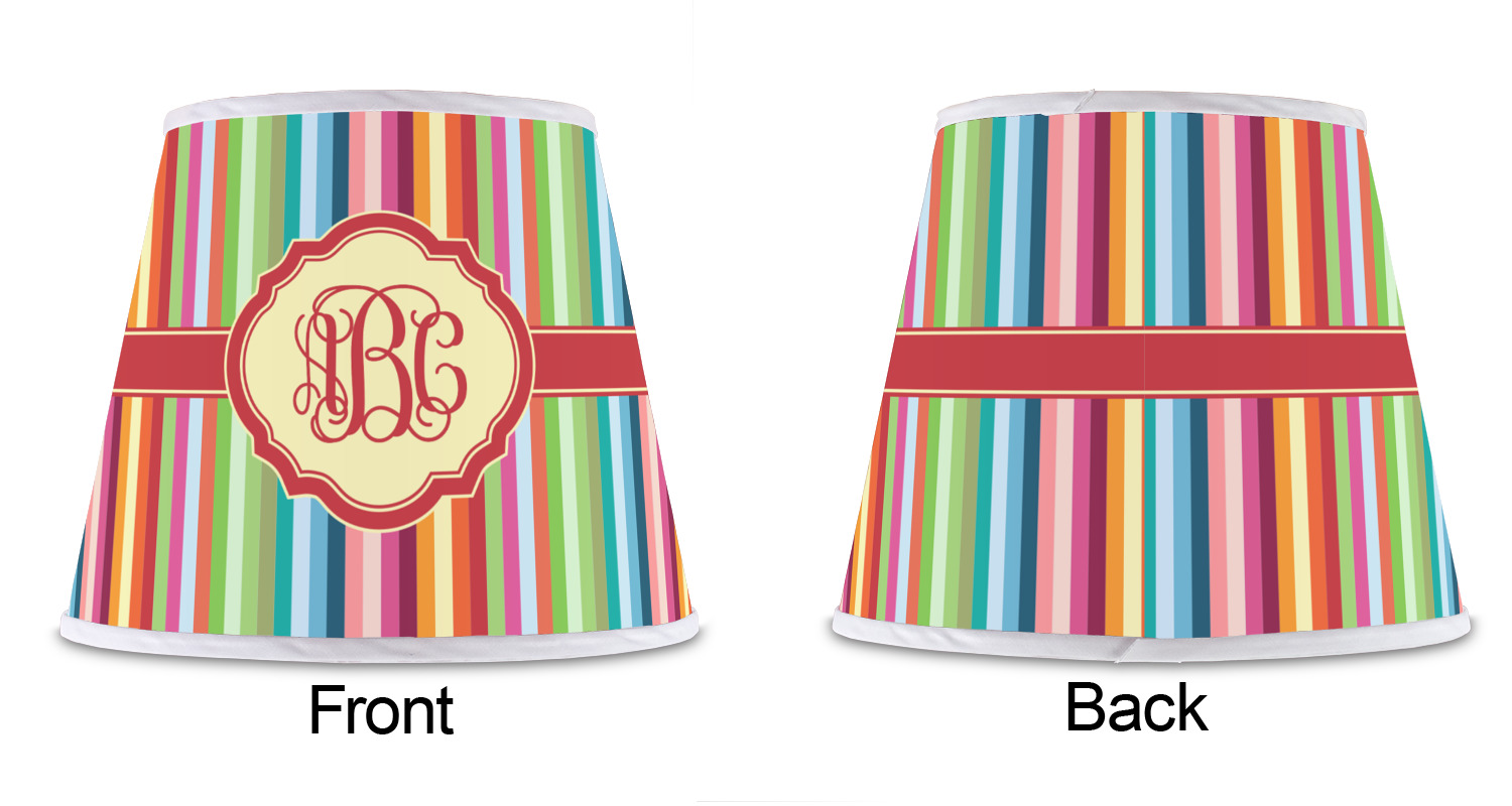 The base of this lampshade is 12 inches in diameter, and the top spans 8 inches in diameter. The total height of the lampshade is 10 inches. The angled nature of this custom lampshade concentrates the light, making it ideal for smaller spaces. This lampshade is made of matte, polyfilm, and displays your customization in its middle. The top and bottom of this colorful lamp shade are lined with a white fabric ribbon (which can be replaced with black inside the design studio) which frames your design and creates a sophisticated finish. As an UNO fitter lampshade, this unique lamp shade will fit a variety of bases.