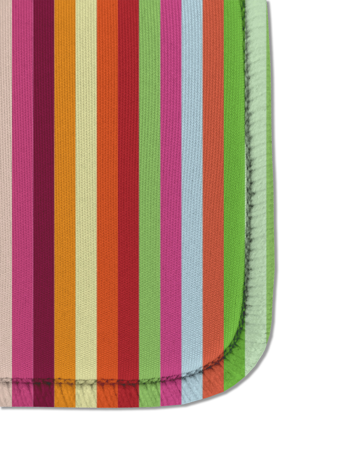 Modern meets retro! This modern vertical stripe has a wonderful multicolored retro look to it. The decorating choices are endless with all these gorgeous colors.