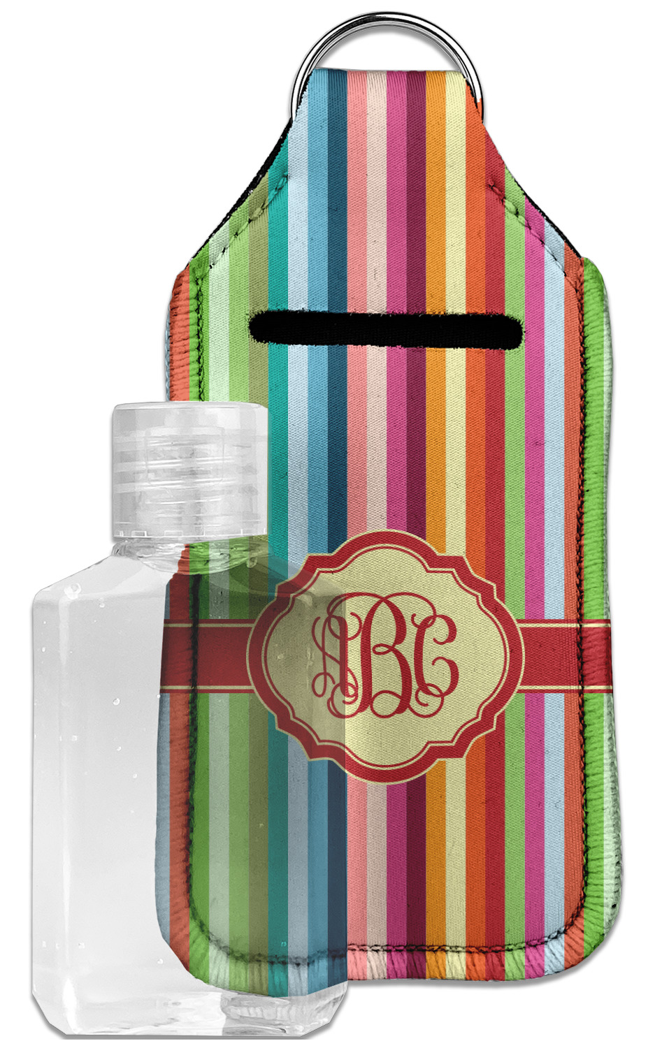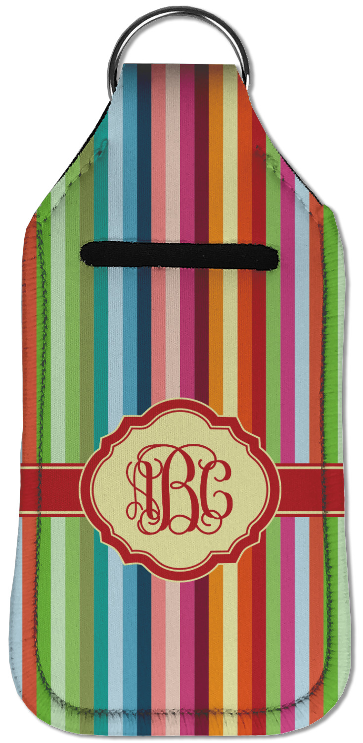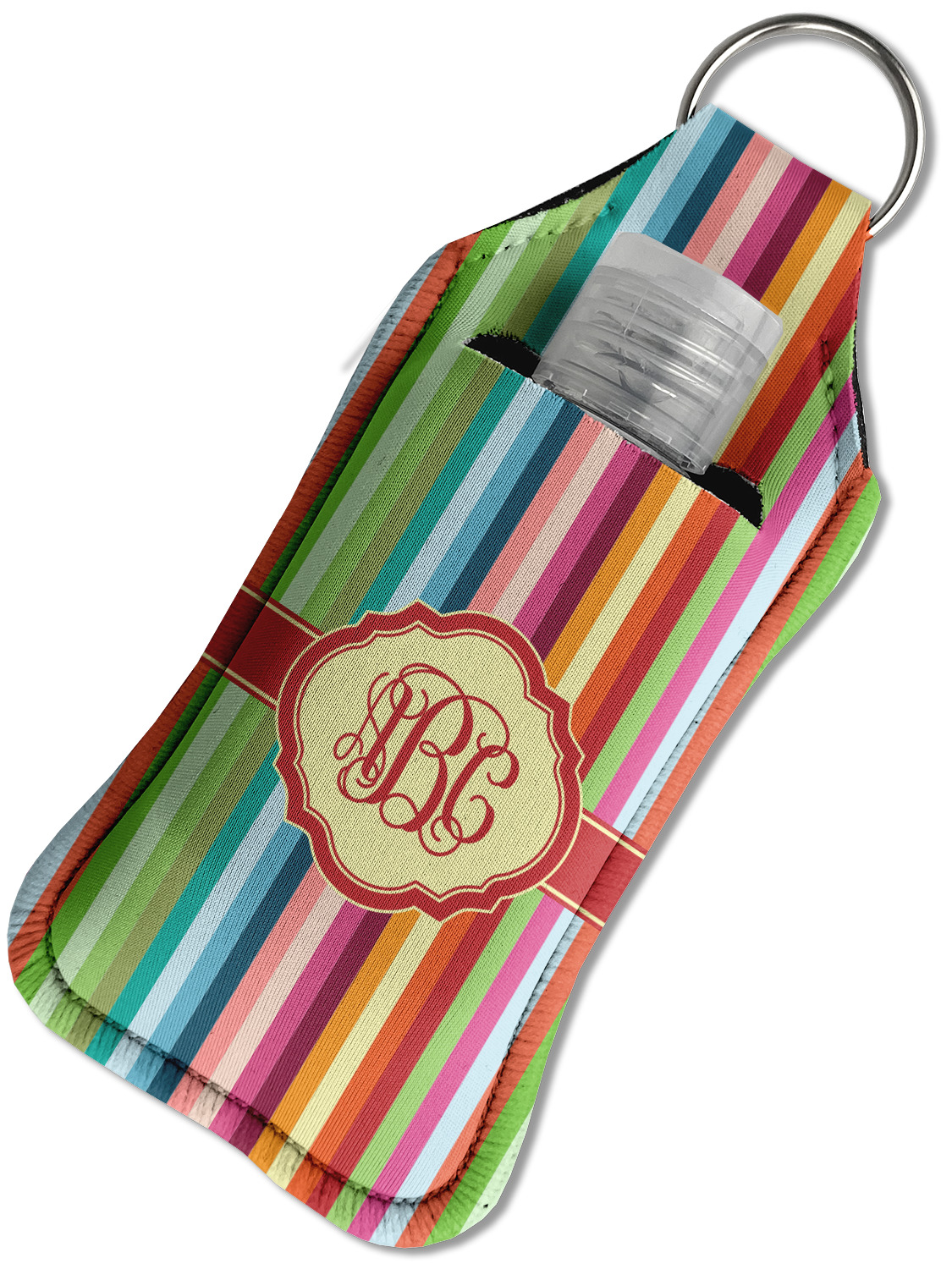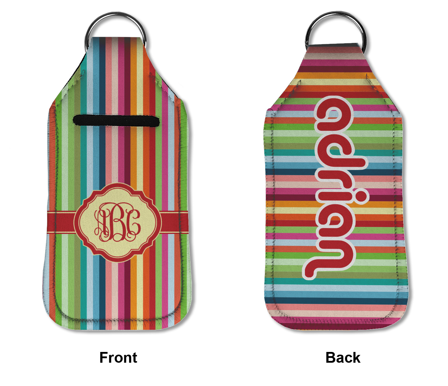 Each hand sanitizer holder comes with its own empty travel-sized, refillable hand sanitizer sure to fit snug in your customized sanitizer case! Our hand sanitizer cases are a durable, yet soft neoprene material sure to last any daily activities or travel agenda. Customize and personalize a hand sanitizer bottle holder with one of our two sizes - small (4.25" x 2.25") or large (5.5" x 2.5"). Each travel sanitizer holder comes with a keyring for attachment on bags, keys, or more!