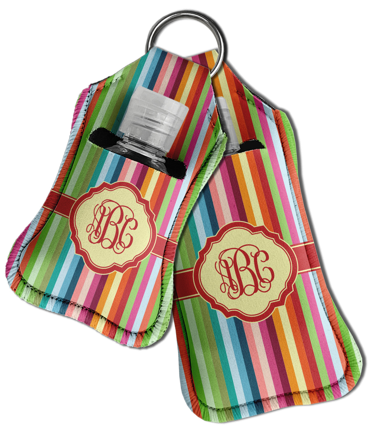Each hand sanitizer holder comes with its own empty travel-sized, refillable hand sanitizer sure to fit snug in your customized sanitizer case! Our hand sanitizer cases are a durable, yet soft neoprene material sure to last any daily activities or travel agenda. Customize and personalize a hand sanitizer bottle holder with one of our two sizes - small (4.25" x 2.25") or large (5.5" x 2.5"). Each travel sanitizer holder comes with a keyring for attachment on bags, keys, or more!