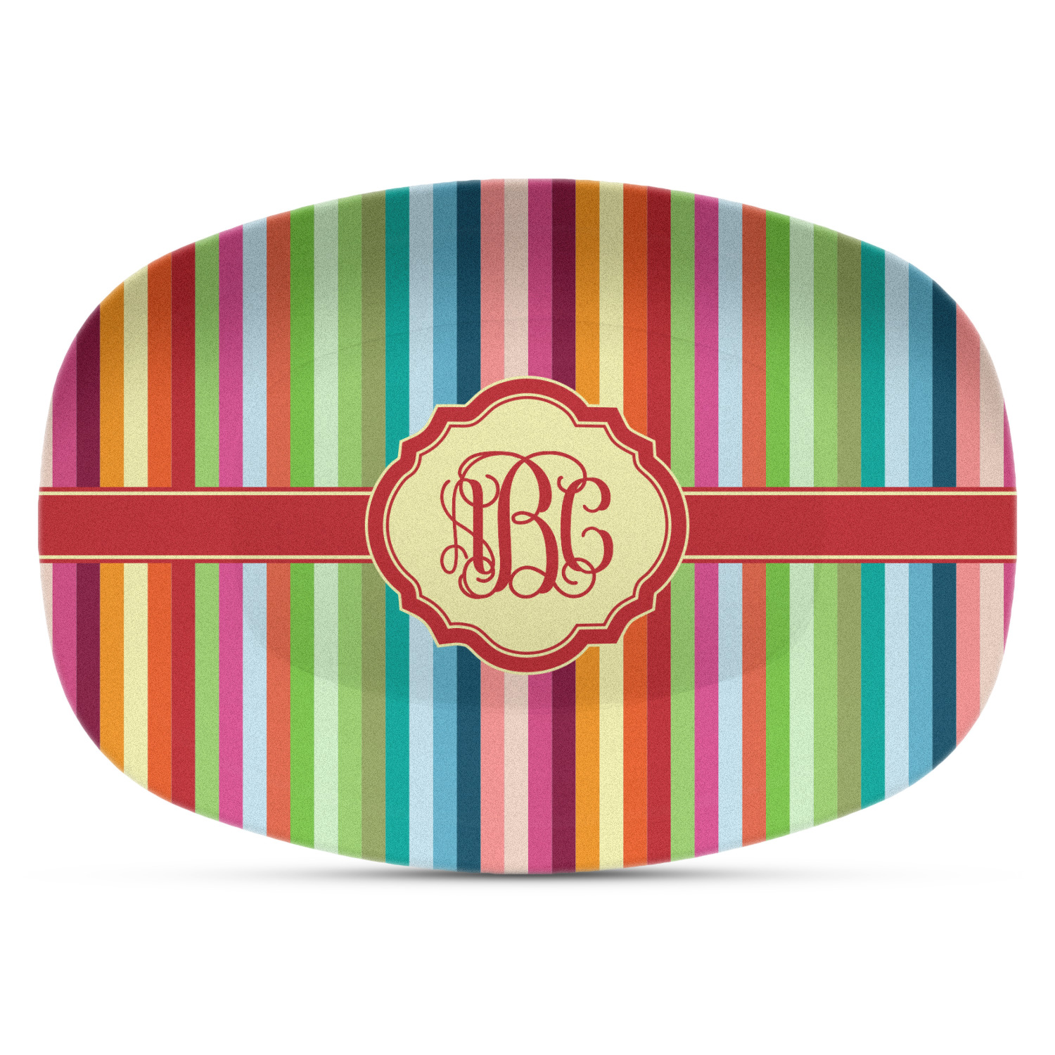 These serving platters are made from a composite, thermo-set, polymer plastic that gives it the versatility, durability, and weight of a melamine platter, without any of the downsides of melamine. These personalized platters, can withstand temperatures up to 250 degrees Fahrenheit, for up to 60 minutes. No harmful chemicals, such as BPA, formaldehyde, and DEHPs were used in the manufacturing of this product. This large serving platter measures at 14" x 10.25", and is spacious enough to hold any of your appetizers or bite-sized desserts. The platter exhibits your personalization across the entirety of its front.