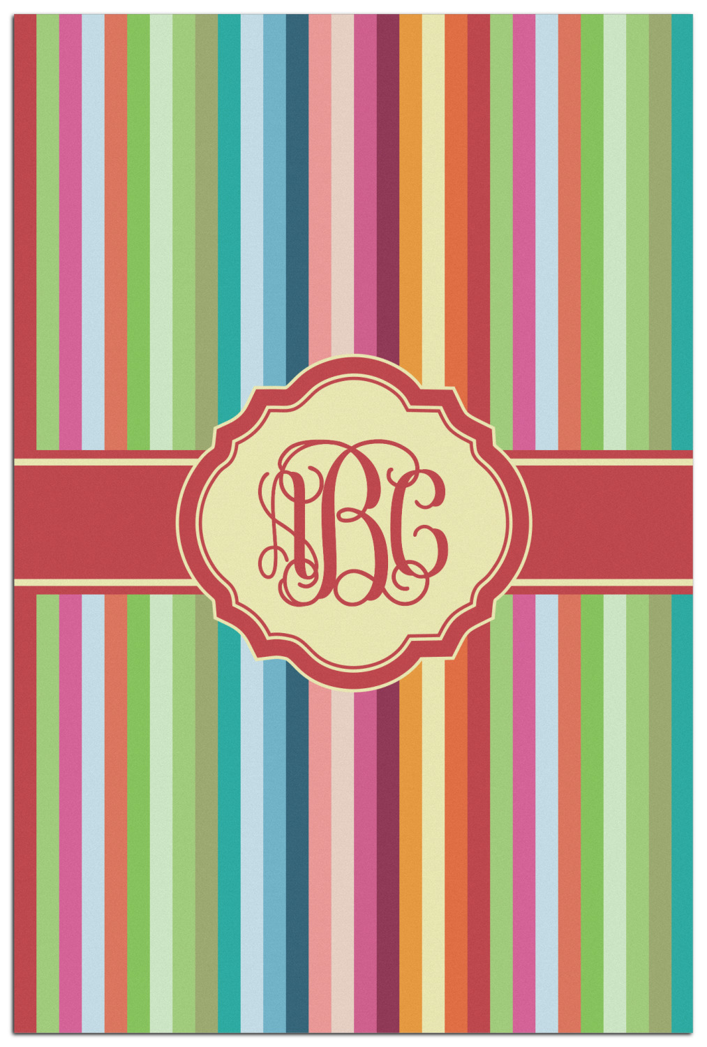 Modern meets retro! This modern vertical stripe has a wonderful multicolored retro look to it. The decorating choices are endless with all these gorgeous colors.