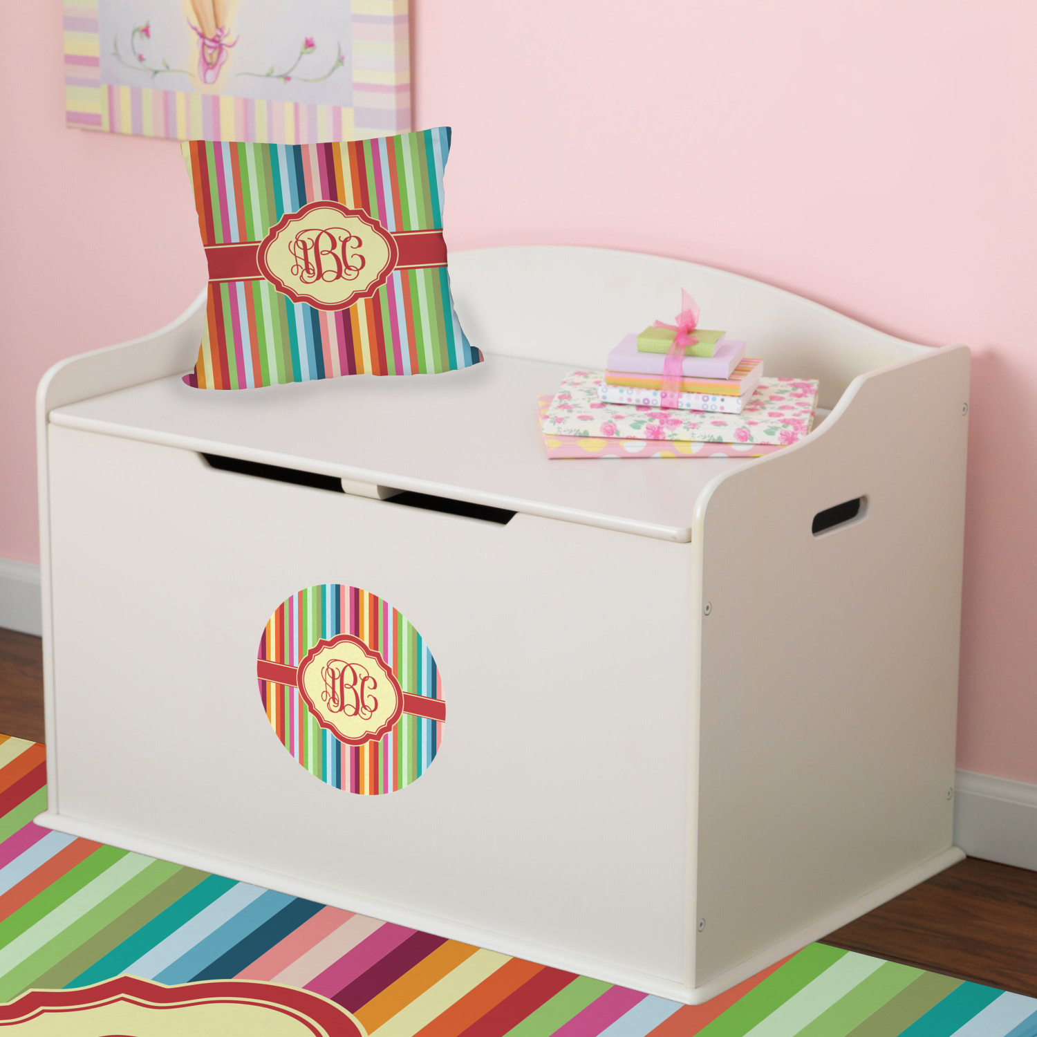 Modern meets retro! This modern vertical stripe has a wonderful multicolored retro look to it. The decorating choices are endless with all these gorgeous colors.