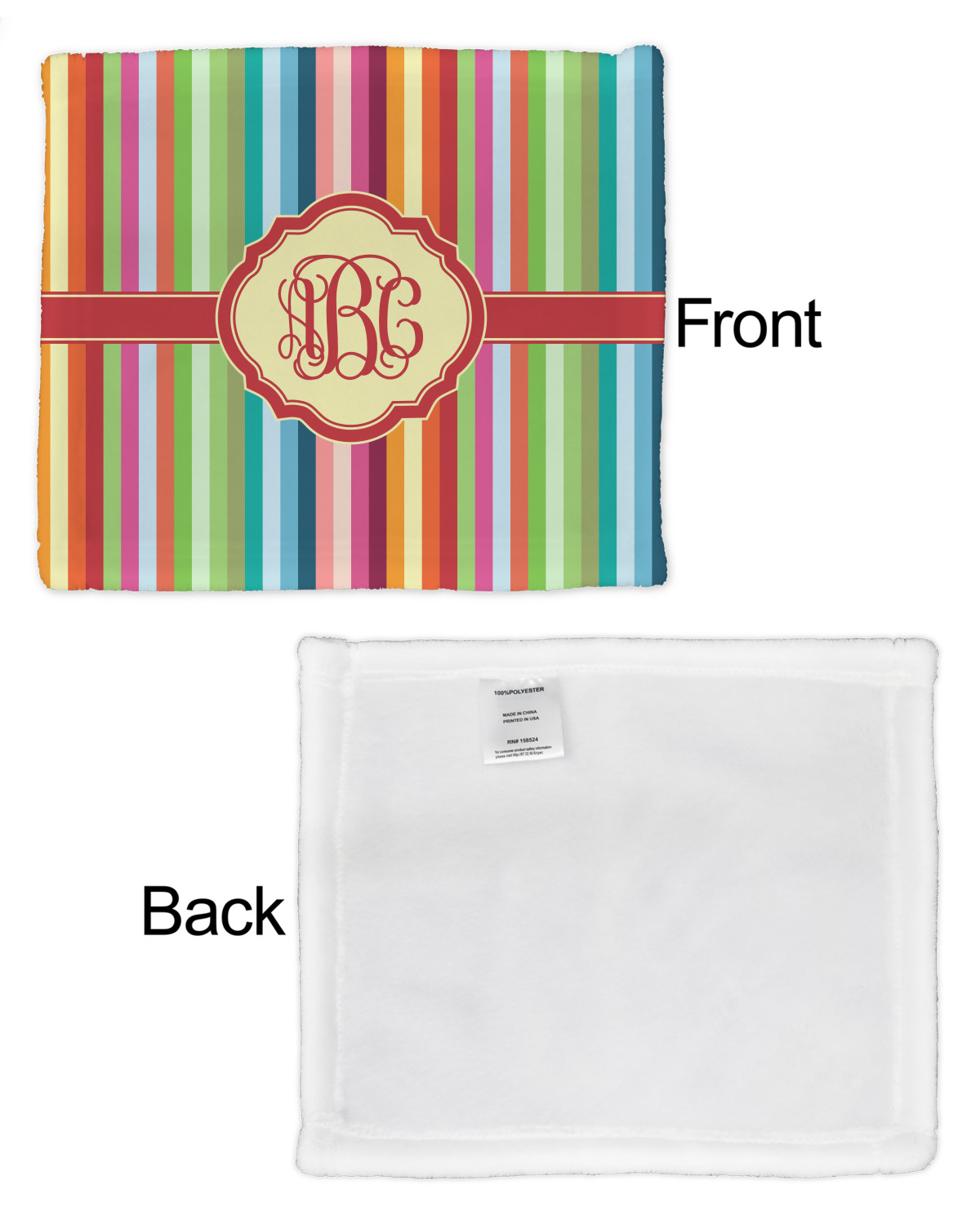 Crafted from an ultra soft fleece, these lovey blankets are the perfect, portable size to follow your child on any of his or her adventures. The plush texture also makes them ideal for naptime. Each personalized baby blanket measures at approximately 12 by 11 inches.