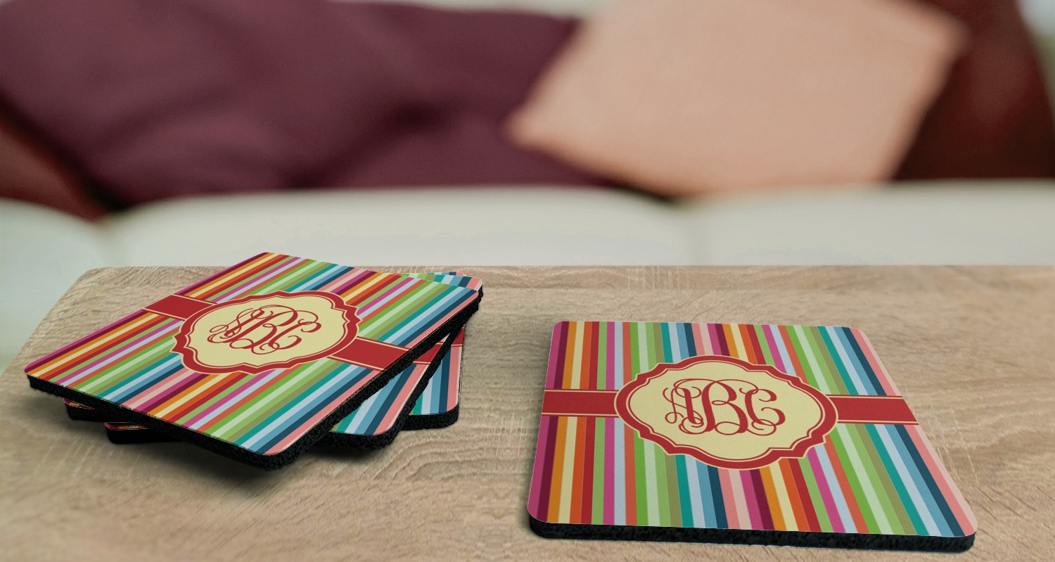 Replace your boring, run-of-the-mill coasters with a set of 4 personalized coasters! When personalized, these coasters will protect your beloved surfaces while adding to your home's decor! Thanks to your coasters bright colors and unique design, your guests will be eager to use them!