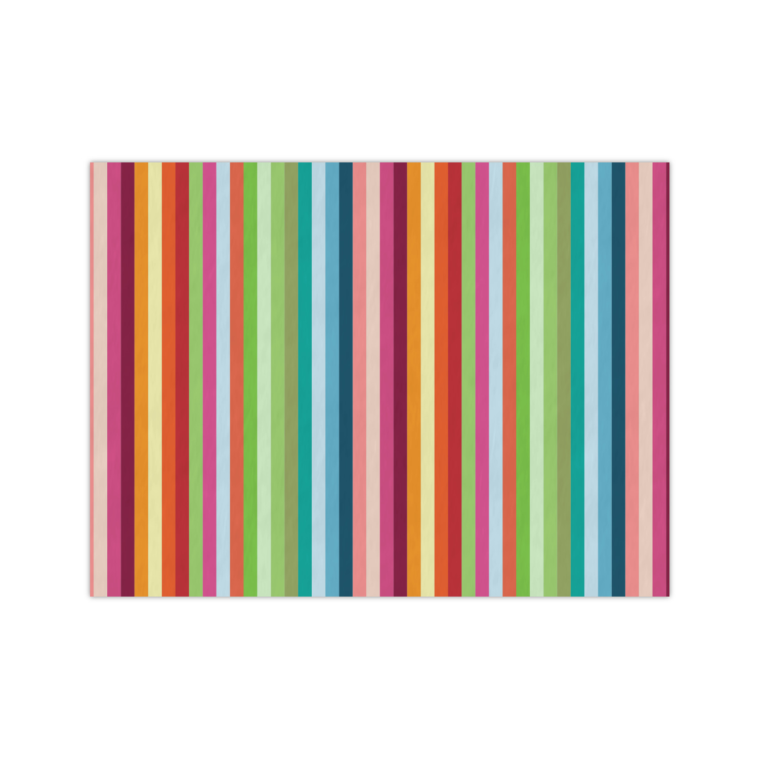 Modern meets retro! This modern vertical stripe has a wonderful multicolored retro look to it. The decorating choices are endless with all these gorgeous colors.