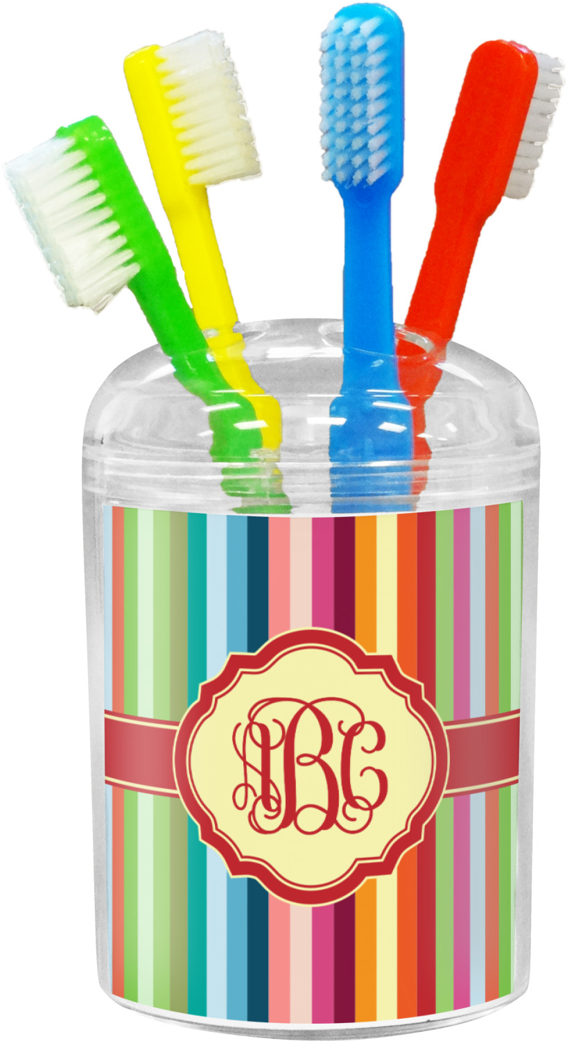 These bathroom toothbrush holders are built from acrylic, making them durable enough to withstand daily use. The stand itself is made of three different pieces: an inner cup, a base, and the lid featuring the four holes. Each toothbrush stand has a twist-off lid for easy cleaning and also features 4 holes to accommodate 4 toothbrushes. While designed for toothbrushes, these holders are multifunctional, and can be used for makeup brushes, paintbrushes, and more! Your customization is displayed on the side of this product on a fine-quality, vinyl insert.