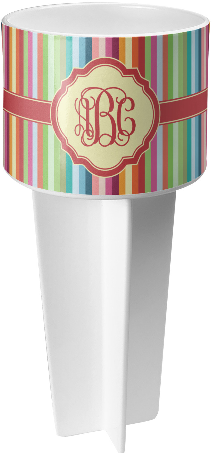 This cup holder has a large stake at its bottom that anchors it to the sand or ground below, while the cup holder rests above the stake. The entire drink holder is made of durable plastic and displays your customization around the cup holder portion. We sell these personalized beach spikers in two different colors: black and white.