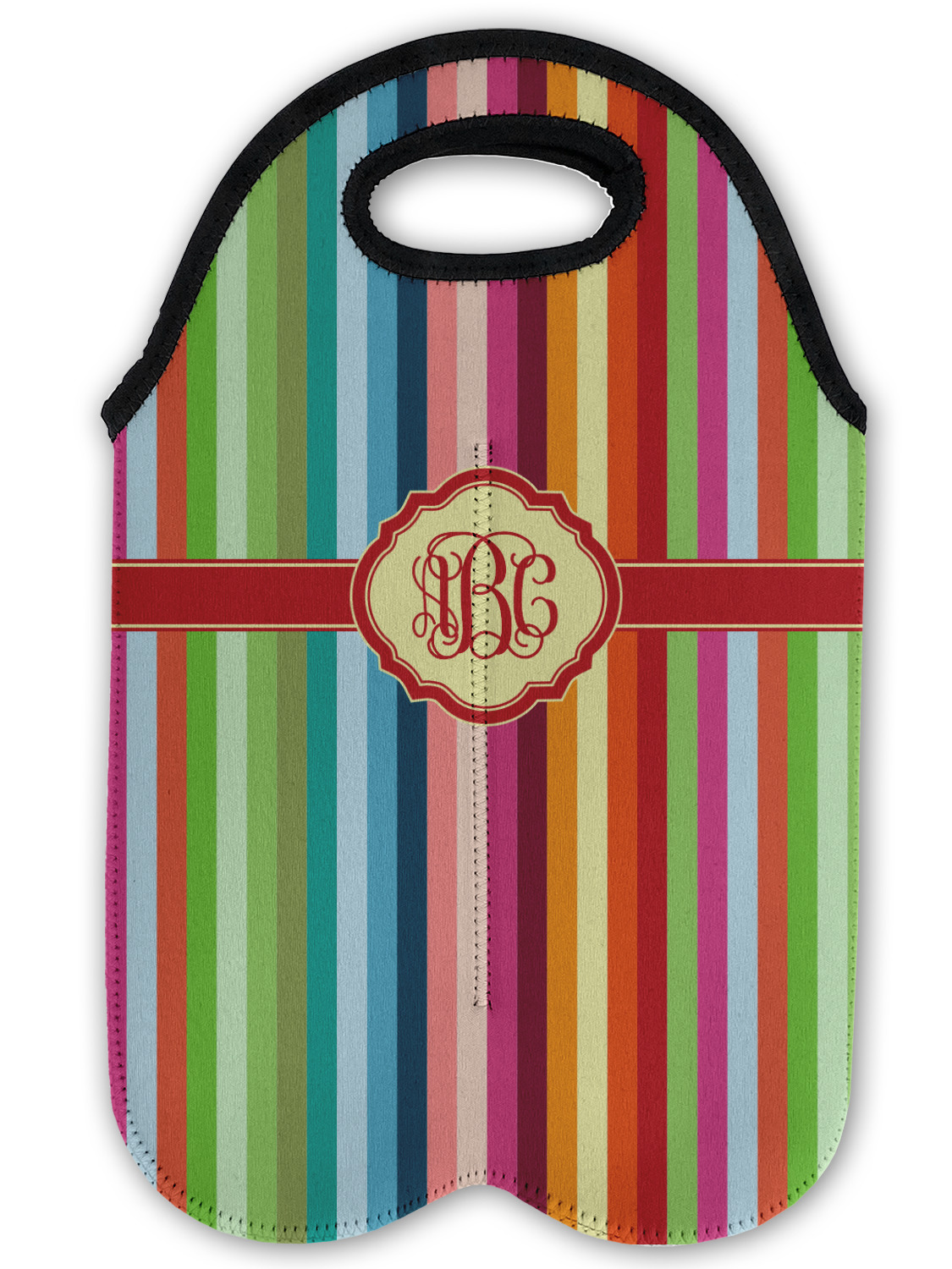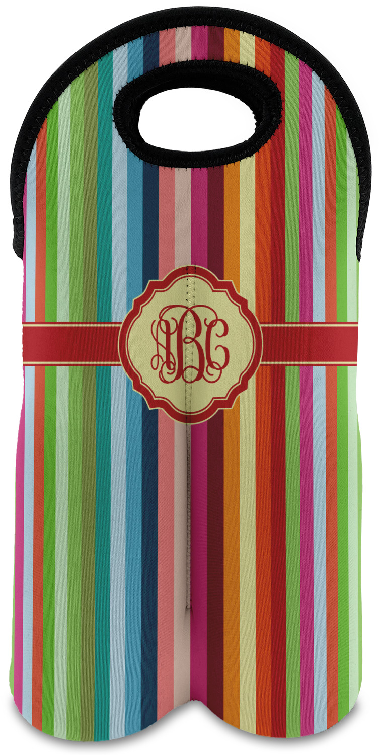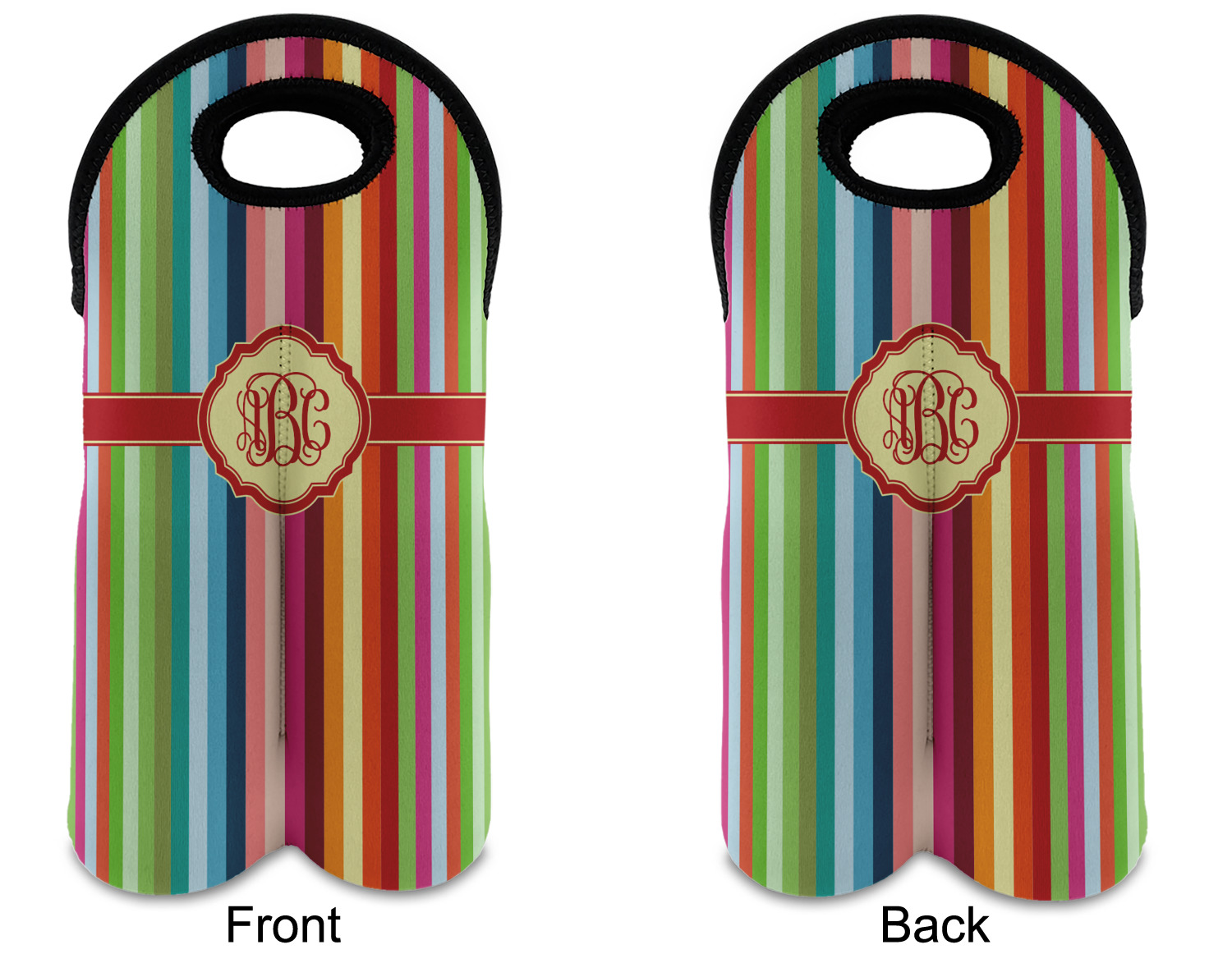 These tote bags are insulated to keep the bottles cold and have a stitched separation down the middle and double handles to keep the two bottles safe and secure during travels.