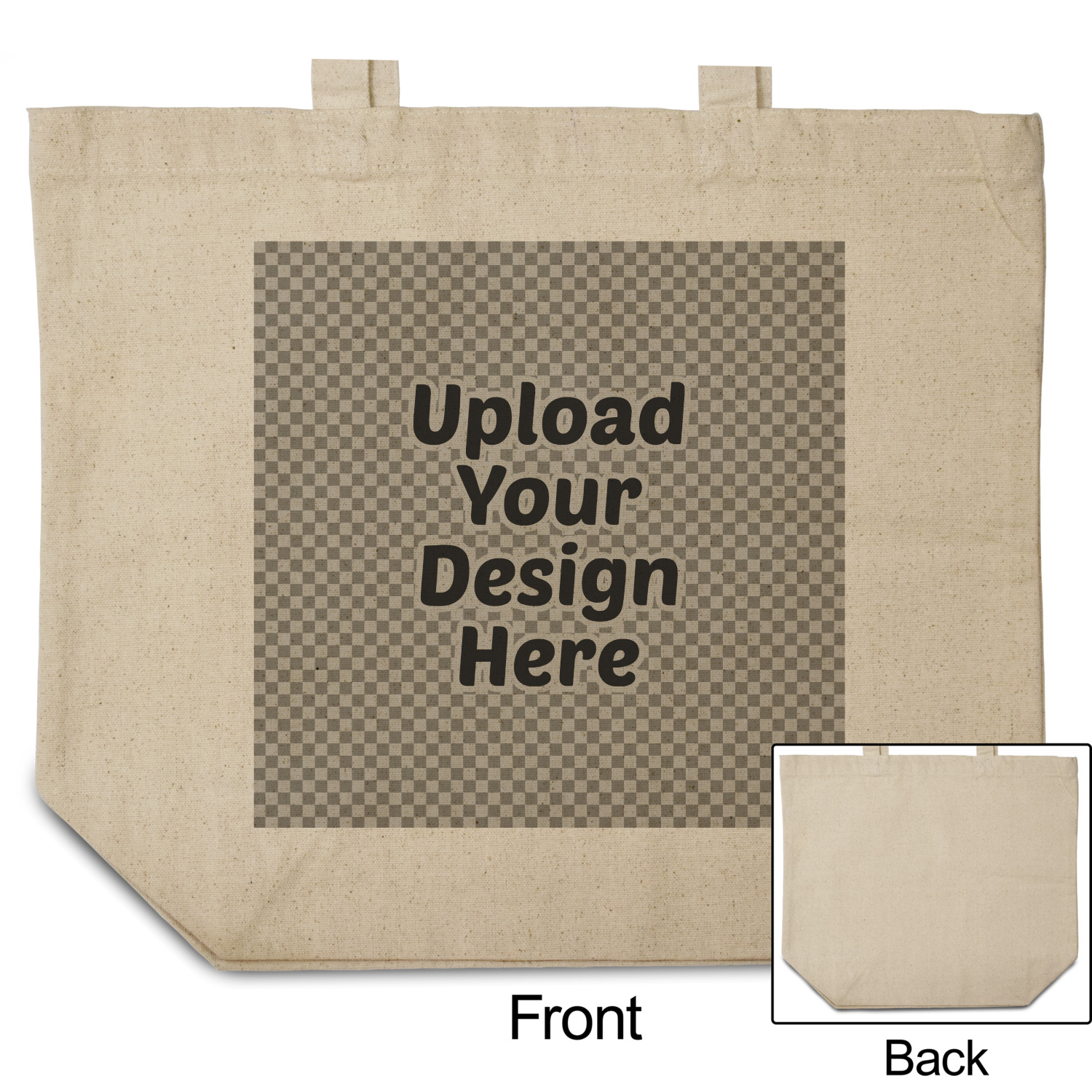 These cotton totes are washable and easy to care for, and they can be folded flat for storage. Your artwork, logo, or photo is printed in full color directly on the cotton tote in the front.