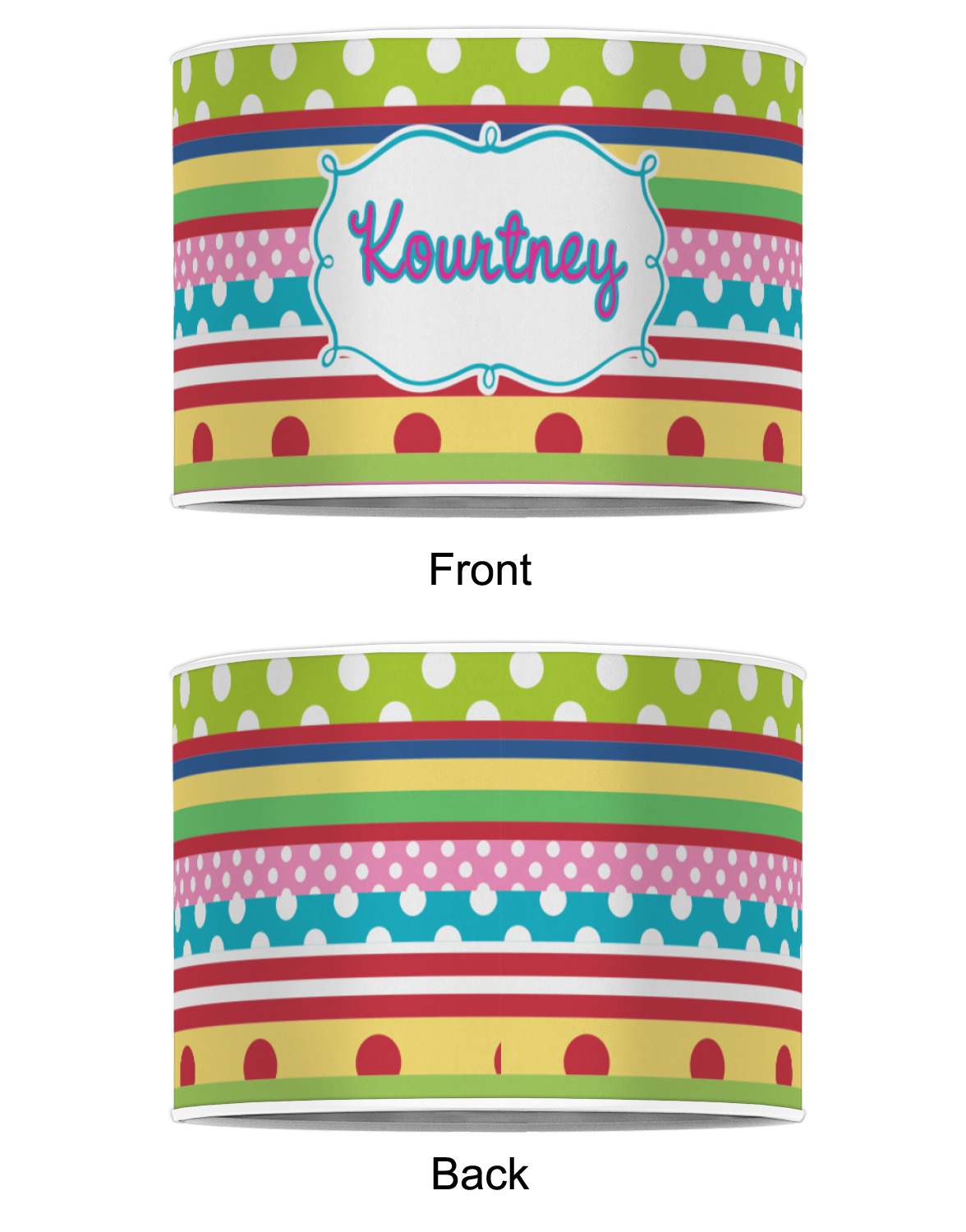 Our customized lamp shades also come in 3 different sizes: 8", 12" and 16", measuring at 8" in diameter by 6" tall, 12" in diameter by 8" tall, and 16" in diameter by 10" tall, respectively.