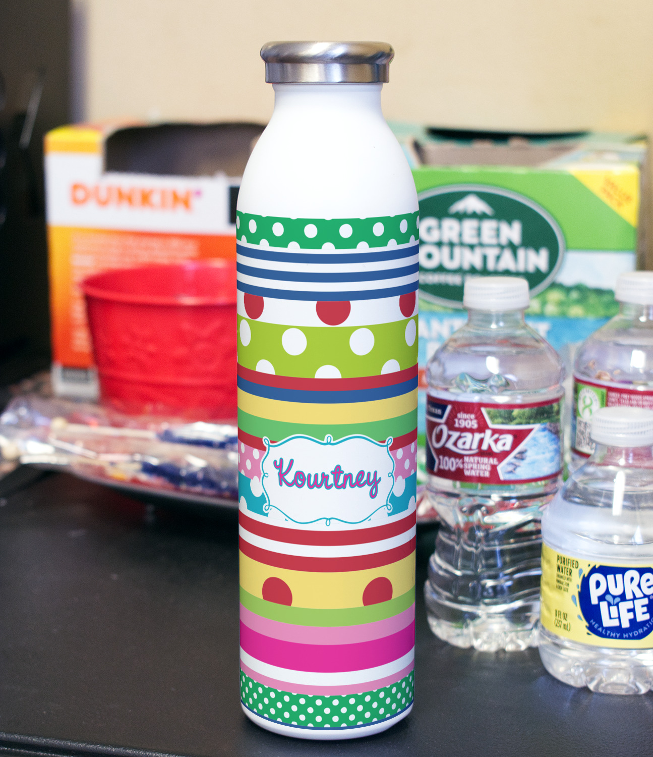 Design your bottle and we will print your design with a UV stable ink so it will not fade over time. After printing the design we apply a clear coat over the print to ensure its durability will stand up to rough every day use.