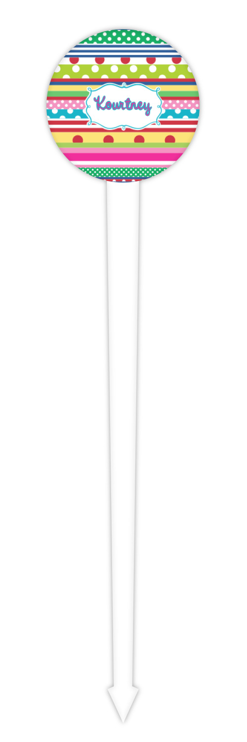 Our plastic cocktail picks have a round disc on top that is printed in full color with your event theme, colors, your logo, your photo, names, initials, monograms etc.