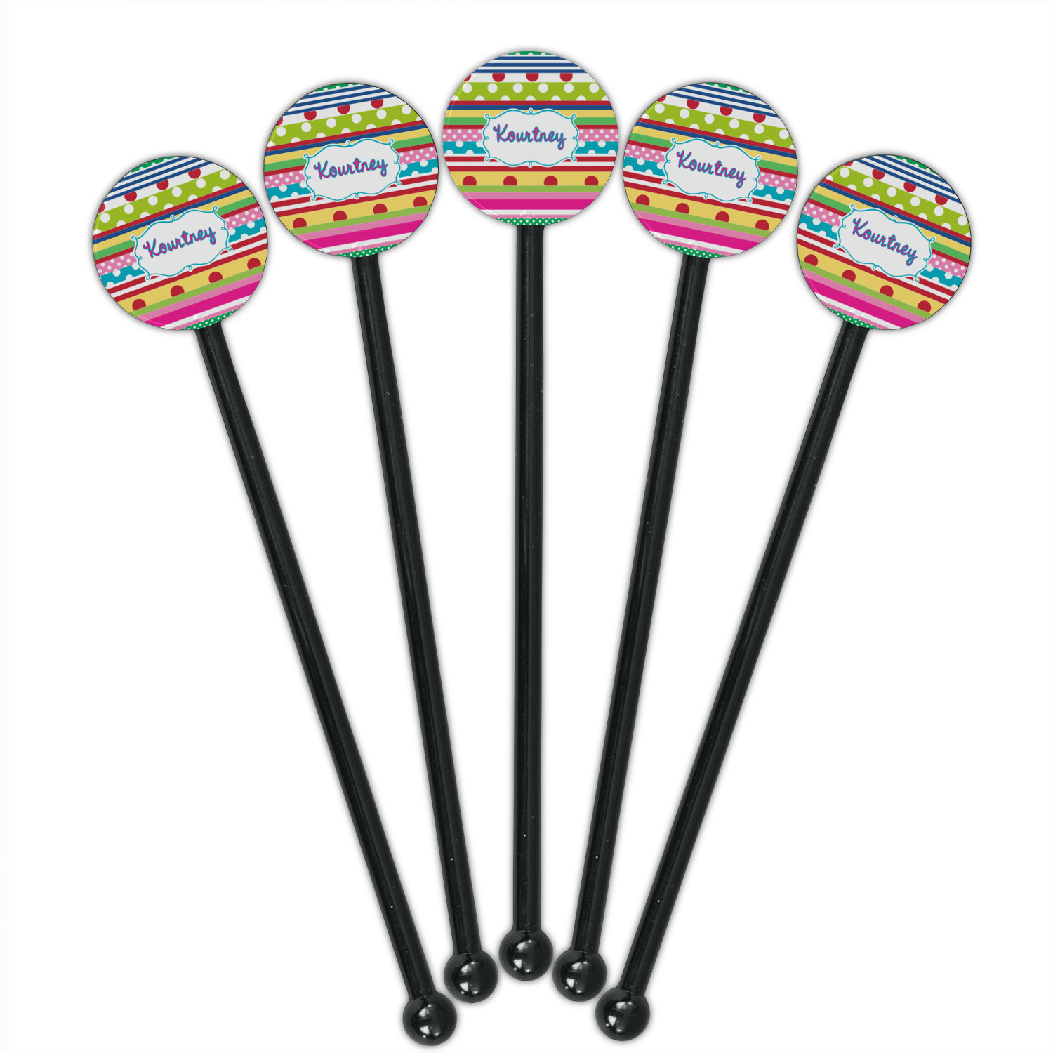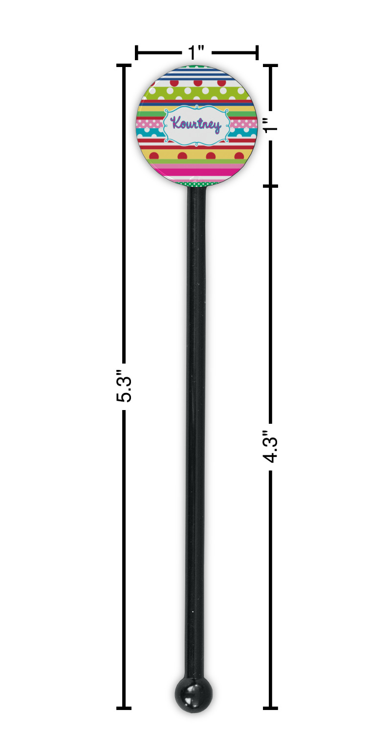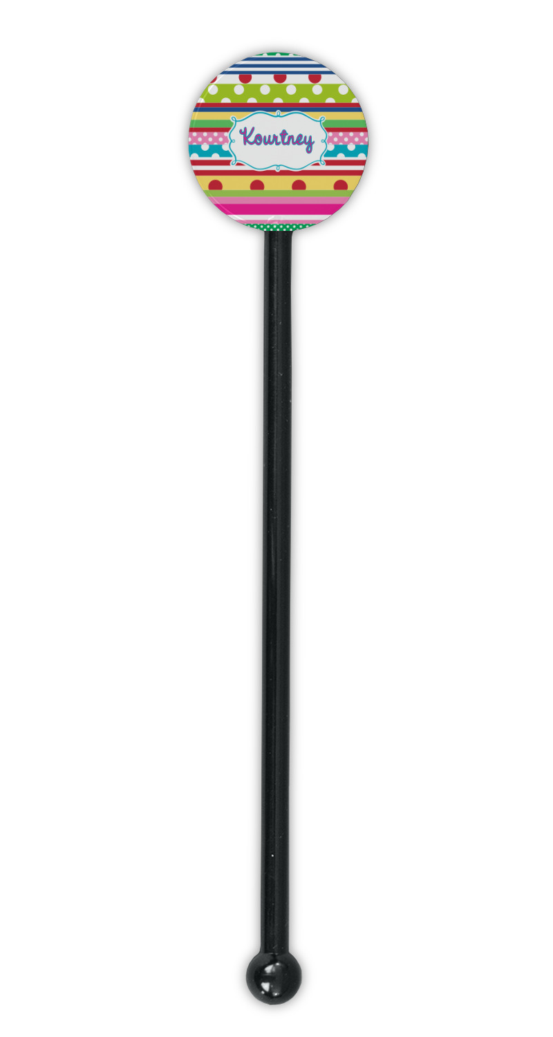 Shape + Symbol Designs for 5.5" Round Plastic Stir Sticks - Black - Single-Sided