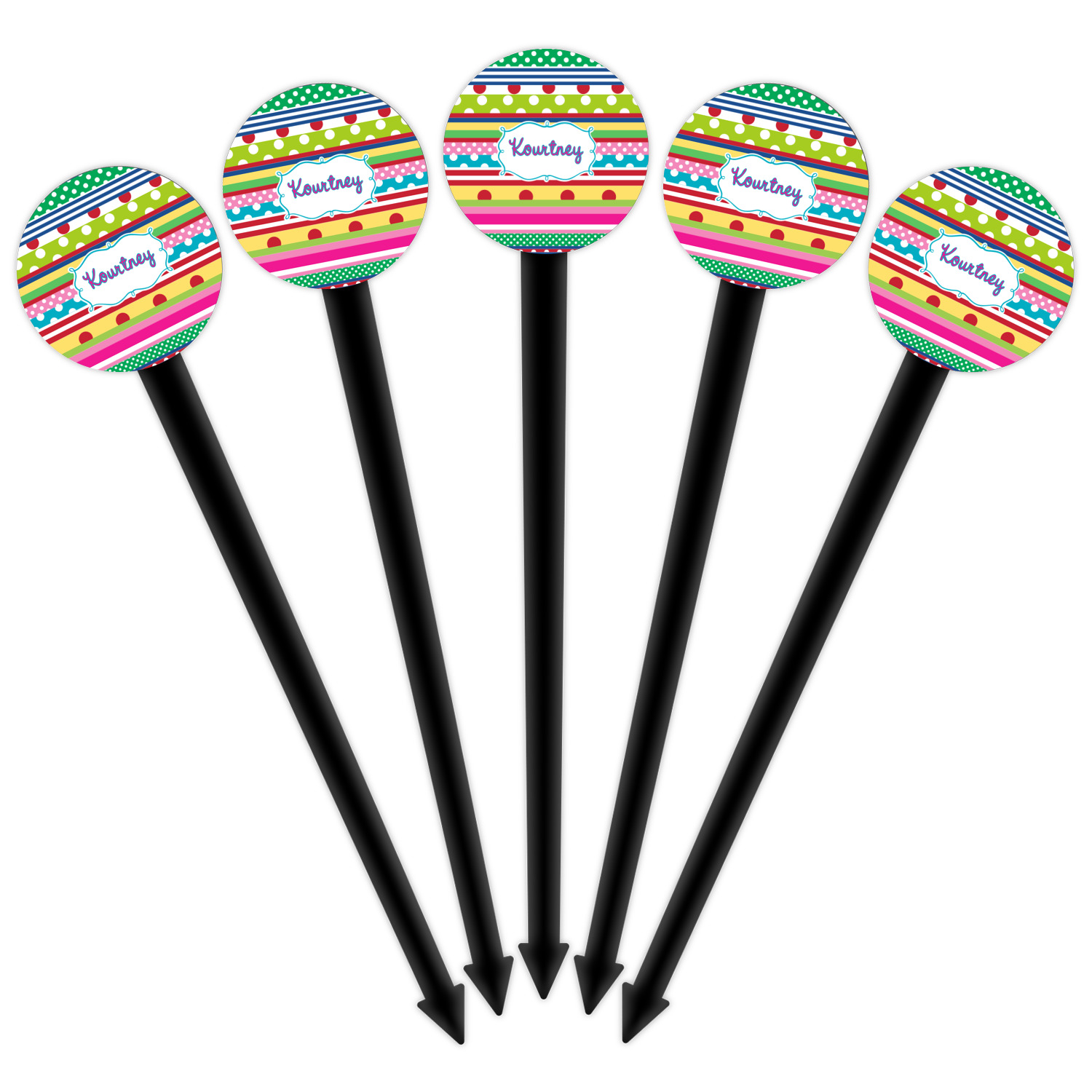 Shape + Symbol Designs for 6" Round Plastic Food Picks - Black - Single-Sided