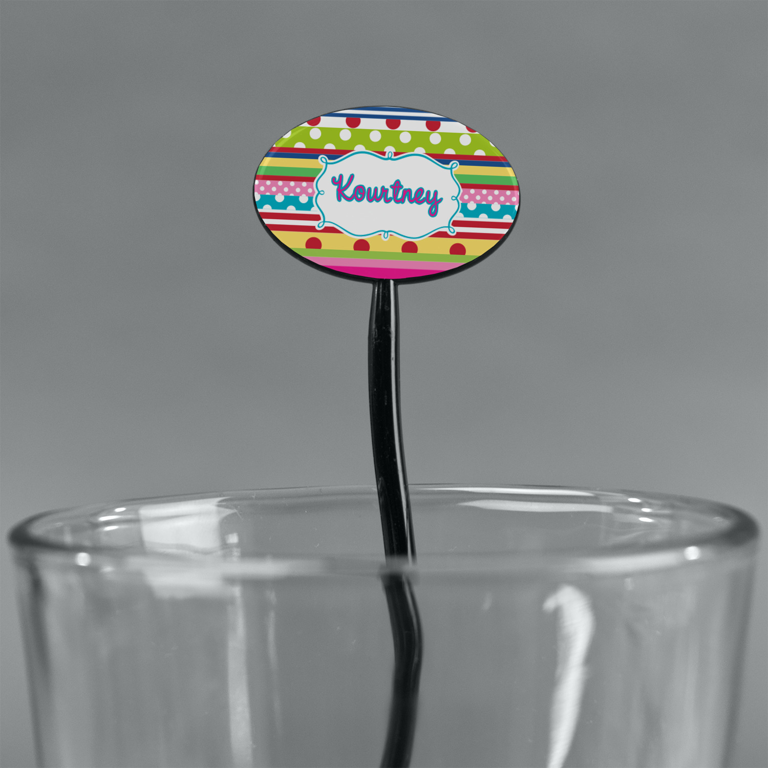 Shape + Symbol Designs for 7" Oval Plastic Stir Sticks - Black - Single-Sided