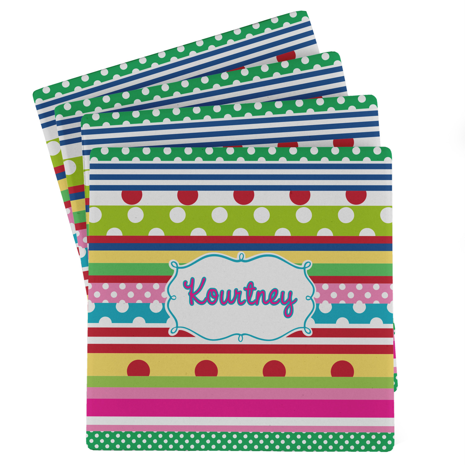 At YouCustomizeIt.com, you can put any design on the coasters. You can upload your own design, photo or logo; you can customize one of our designs and customize the patterns, colors, fonts etc.