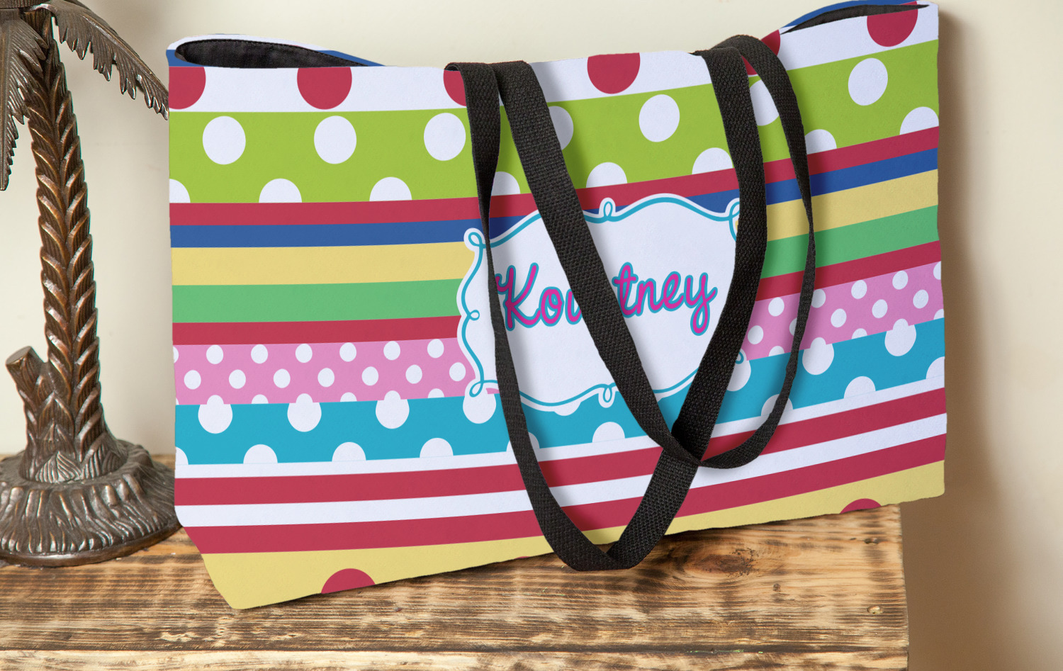 These beach totes are big enough to also be used around town as shopping totes or when away for a weekend as weekender totes.
