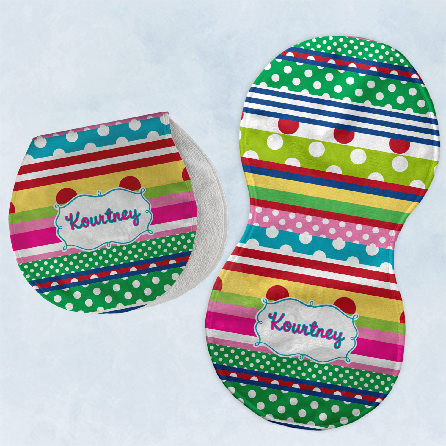 Choose your baby burp cloth from our two styles - Fleece (rectangular) or Microfiber Velour (peanut shape). The lightweight and absorbent design makes each burp cloth multipurpose; use them as a burp pad, a lap pad, a changing table, or a spare cloth to clean up any baby mess. Your customization is displayed across the front with baby-safe ink to ensure extra comfort with a white backing.
