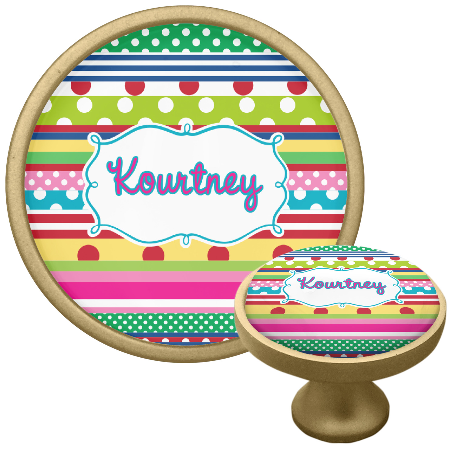 We sell these cabinet pulls in two different colors to better match your room's color scheme. We offer an oil-rubbed bronze base that is black in color, and a satin nickel option, which has a silver color. Your design is displayed across a high gloss vinyl insert that is placed on top of these cabinet handles. We then place a 1 inch thick glass cabochon atop the design, which seals the cabinet knob and makes the colors of your customization stand out. These custom cabinet knobs are approximately 1.3 inches in diameter. Your purchase includes a 1 inch screw that can be used to mount the knob to any cabinet in your home.