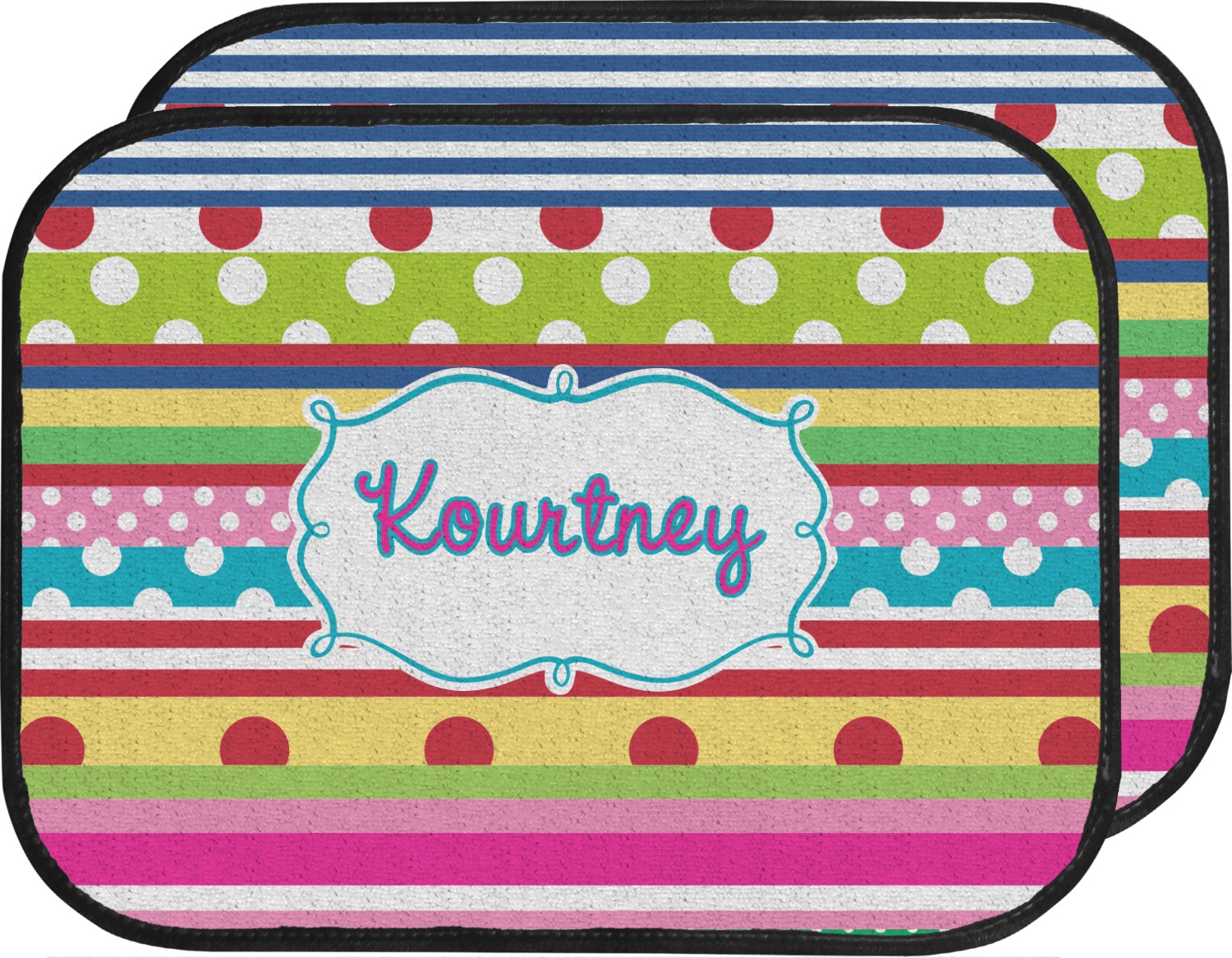 We craft our auto floor mats mats from polyester, apply a black finish to the edges, and lined at the bottom to prevent slippage. These mats protect your floors from grass, mud, and any accidental spills. We display your personalized design on the front face of each mat. The sizes of these car floor liners are standardized to provide a versatile fit for all vehicles. The front rows car mats measure at 17 by 26.5 inches, while the back rows measure at 17 by 13 inches. We sell three packages of car floor mats. You can purchase a pair of front row car mats, a pair of back row car mats, or a set of front row and back row car mats. To make an informed purchase, we recommend measuring the surface area of your car floors.