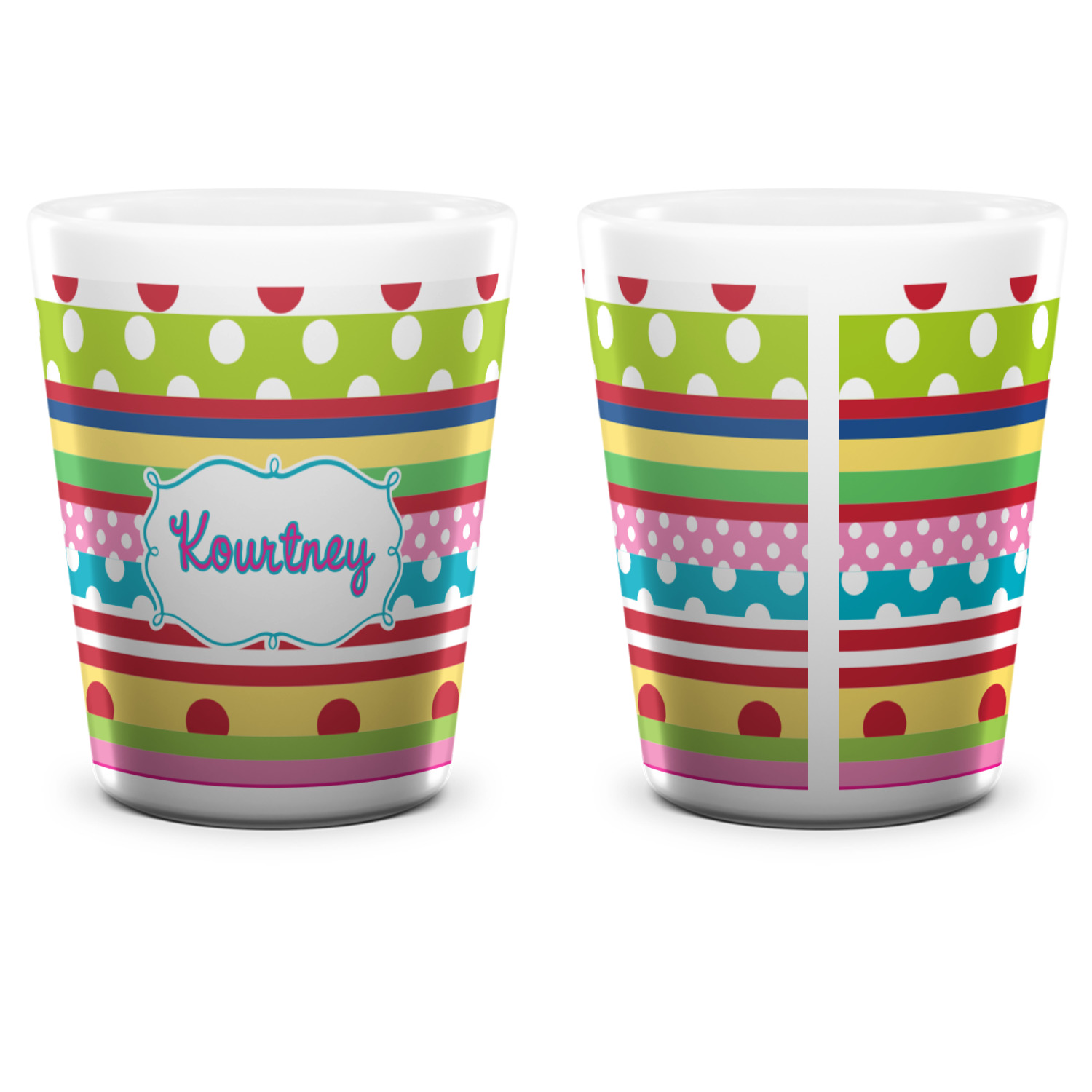 Made from ceramic these shot glasses are printed in full color with the design of your choice. These are a standard 1.5oz size and stand 2.25" tall. Available in a full white ceramic or a two-tone with a black color inside the shot glass. Buy a single or a set of 4, all of which can be designed separately to get you just what you want and need.