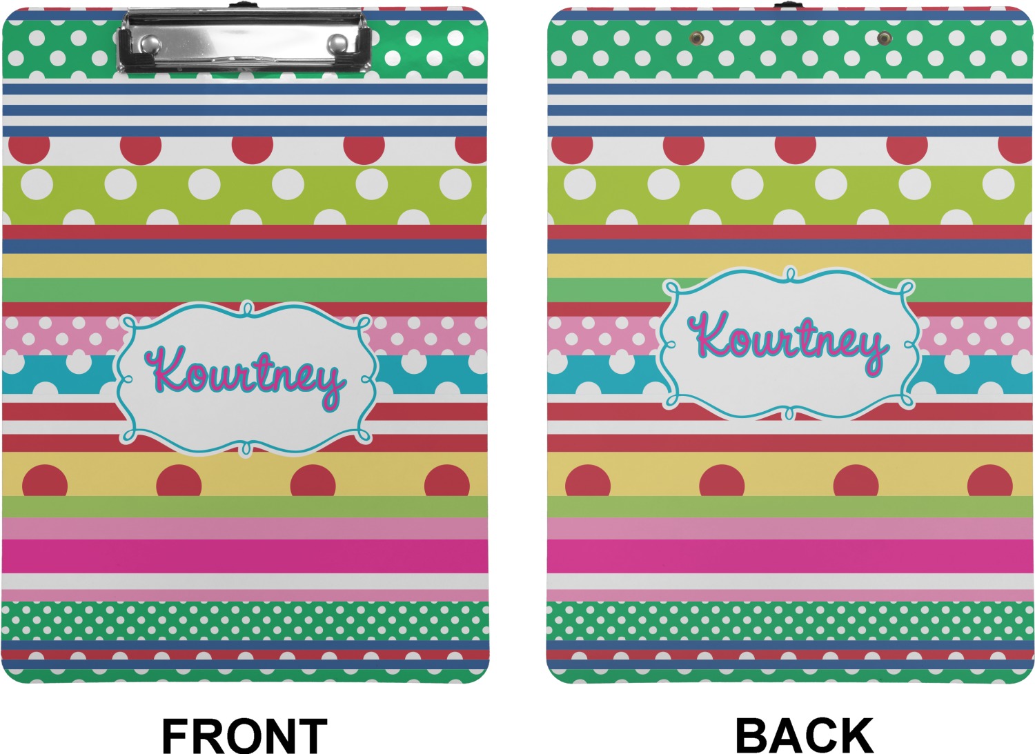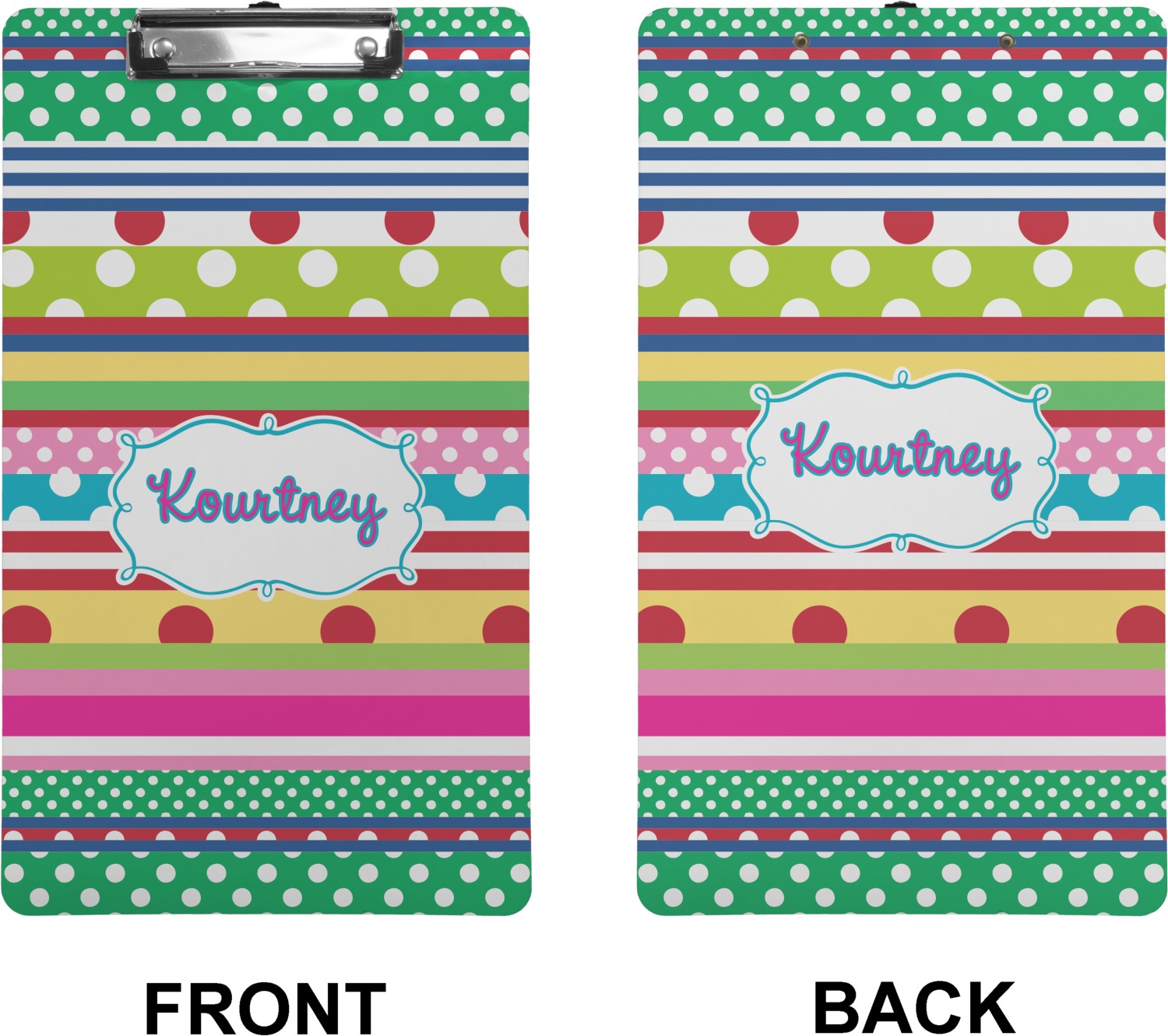 These custom clipboards are made from a strong hardboard and are coated with a glossy finish that accentuates the colors of your design. Alongside a retractable hook at its top, these decorative clipboards also feature sturdy clips to secure several sheets of paper. We sell these clipboards in two separate sizes. Our letter size measures at 12.5" L x 9" W, while our legal clipboard is approximately 15.5" L x 9" W. On both models, your personalization is printed on both sides of this clipboard and can be customized individually.