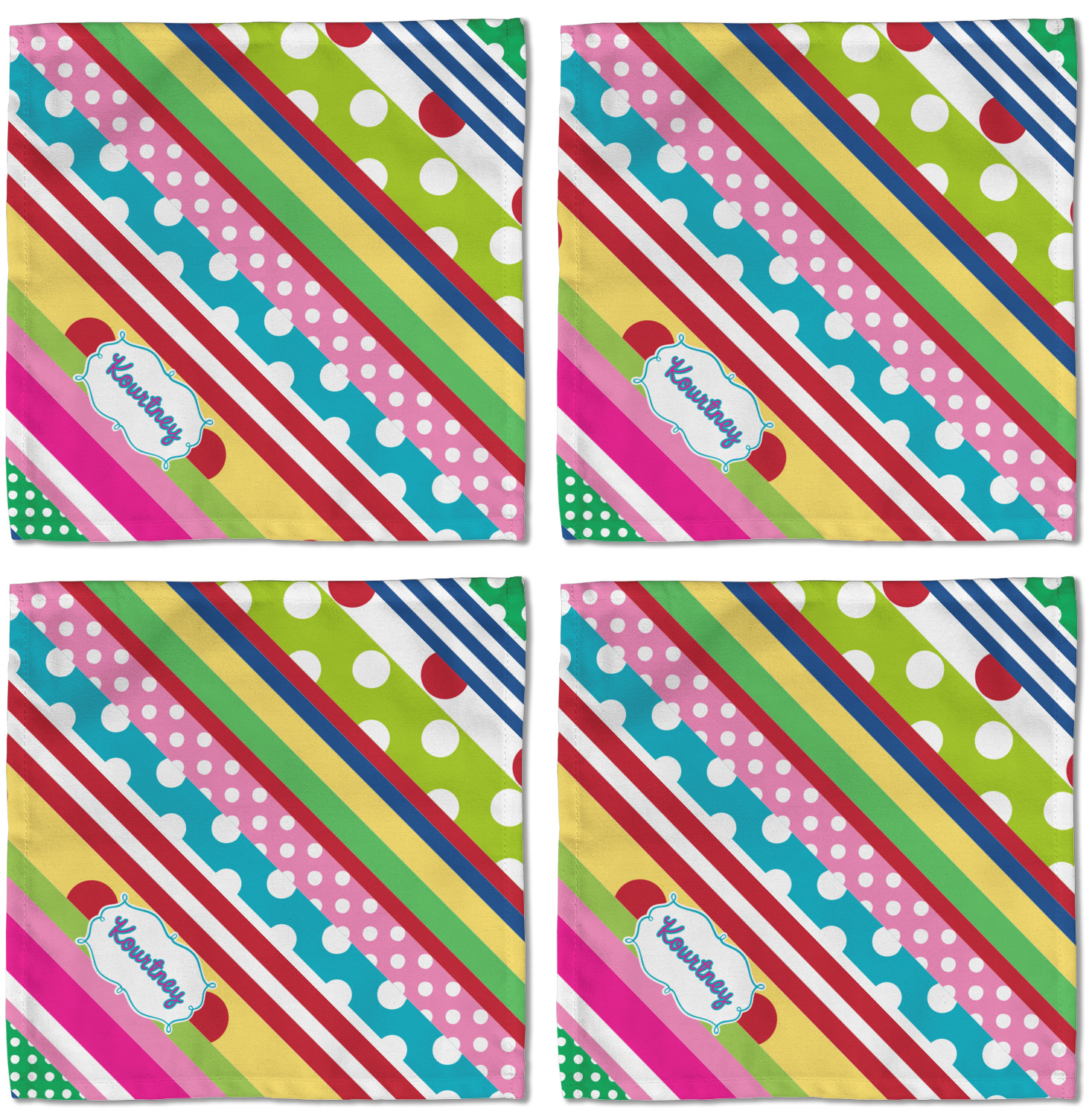 Each customizable cloth napkin is a polyester material guaranteed for long-term use. Since our napkins are cloth, it serves as a great reusable and eco-friendly dining decor. We sell personalized napkins individually or as a set of 4! Print your own unique design on all four napkins, or create four individual designs for each napkin! We offer two different napkin sizes - Cocktail napkins (approx. 10 x 10) and Dinner napkins (approx. 20 x 20). We print your design on one side, perfect for displaying your custom designed lunch napkins in any fold or table setting!