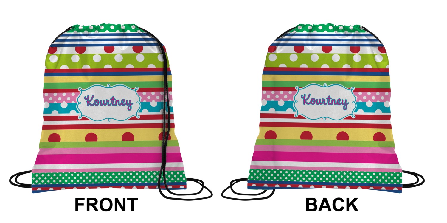Our drawstring backpacks are custom made for you here in the USA. We offer a great selection of cinch bags and it is your choice to personalize them with the text of your choice, in the format of your choice i.e. monogram, name, initial, name & initial. We offer many different patterns and prints; and many of the patterns are available in 45 different colors.