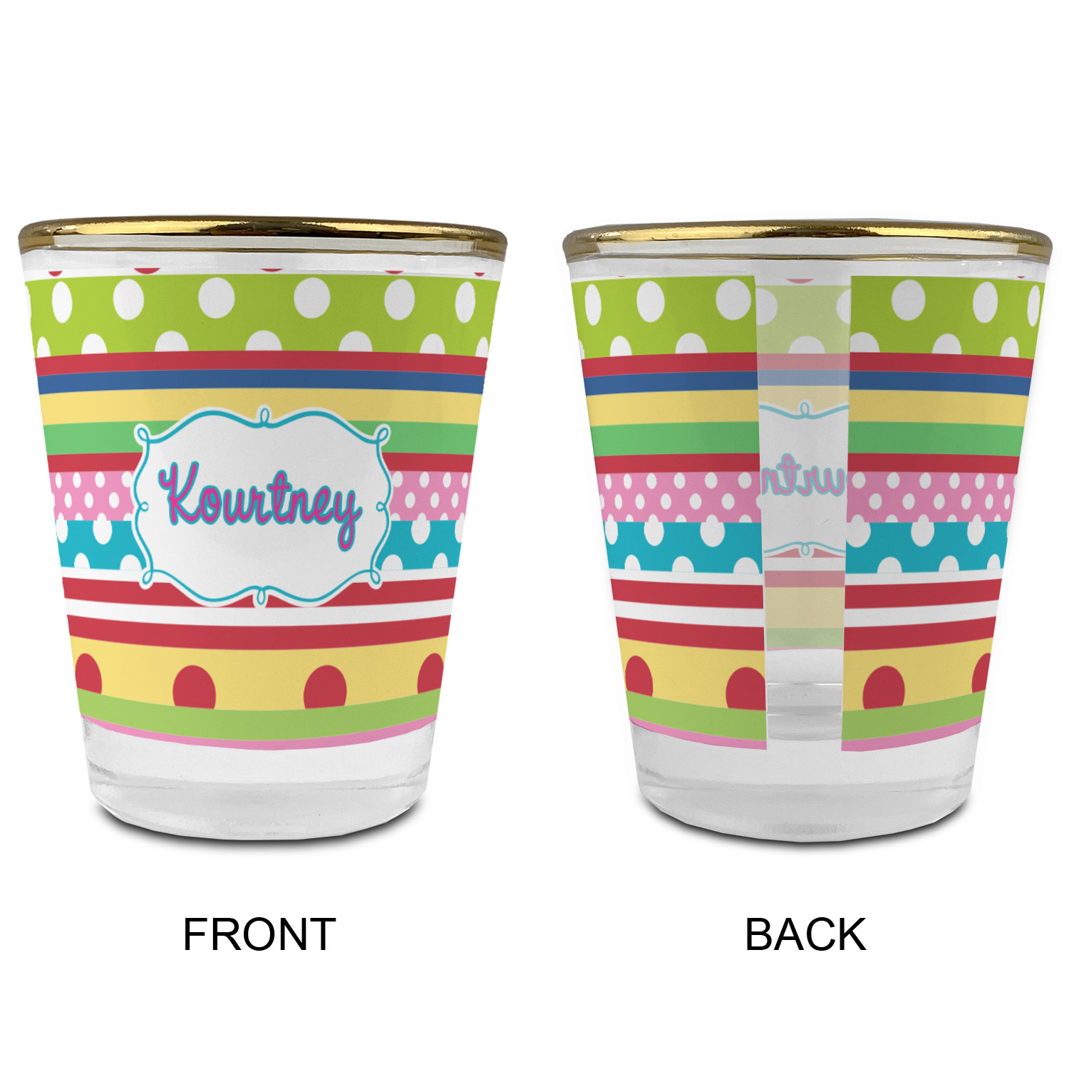 Made with frosted glass, these shot glasses are printed in full color with the design of your choice. They are a standard 1.5oz shot glass and are 2.4" tall. The print is wrapped around the shot glass in a full wrap and boldly displays your customization.