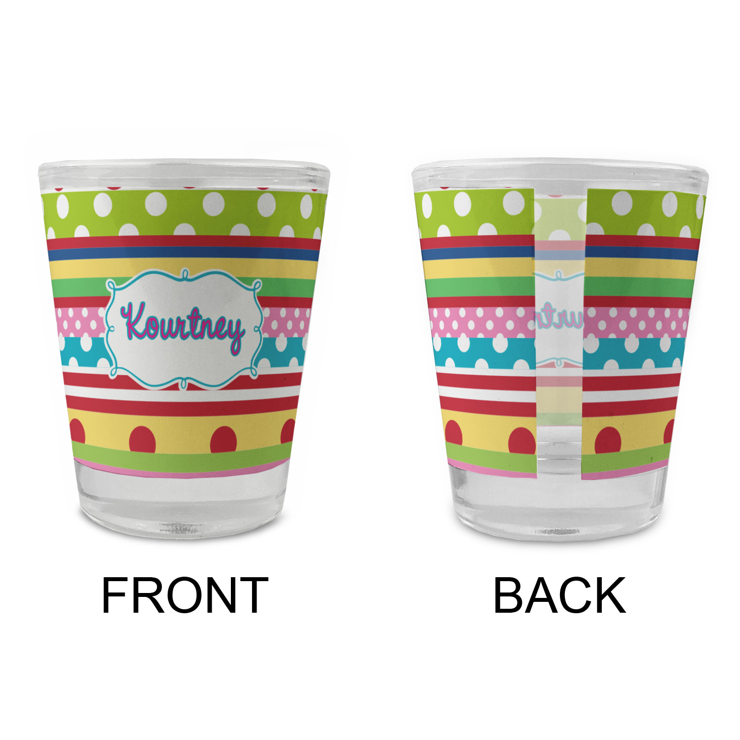 Made with frosted glass, these shot glasses are printed in full color with the design of your choice. They are a standard 1.5oz shot glass and are 2.4" tall. The print is wrapped around the shot glass in a full wrap and boldly displays your customization.