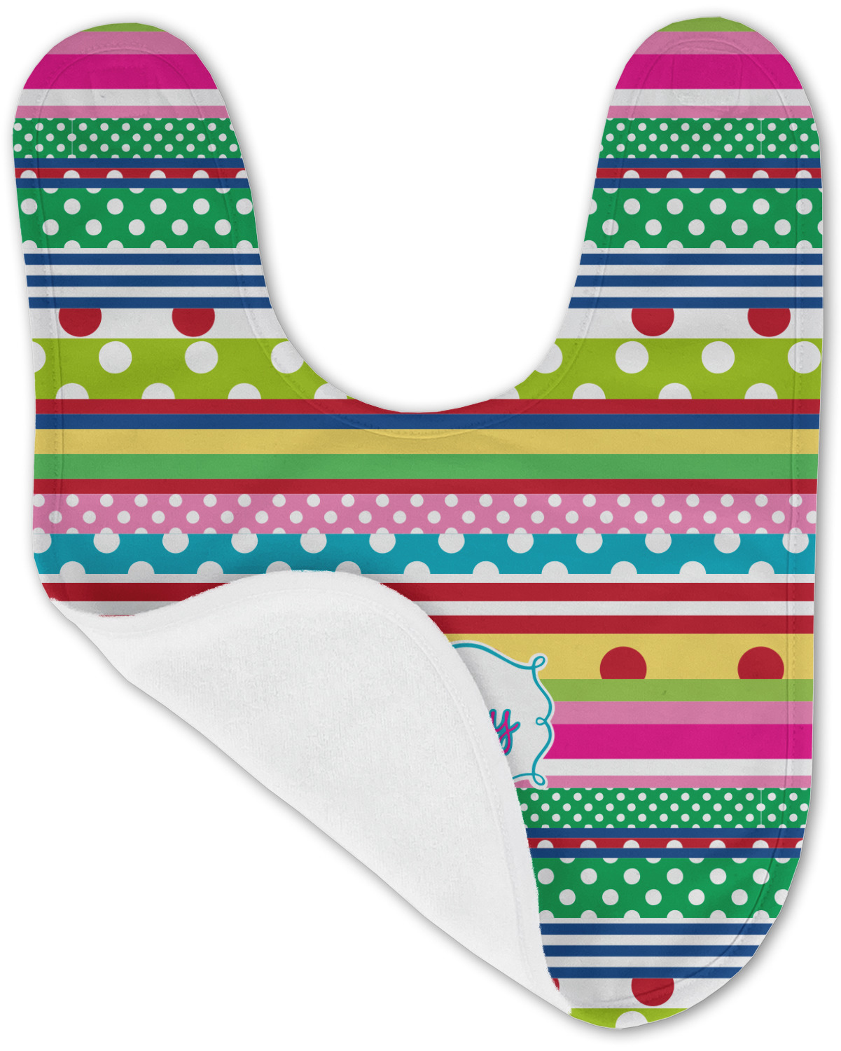 Made of soft polyester, each customizable bib hugs comfortably around the neck to catch every drip and drool. Each bib design is printed with baby-safe ink and finished with a secure stitch pattern and velcro clasp. We carry two customizable bib styles -Microfiber Velour and Jersey Knit.