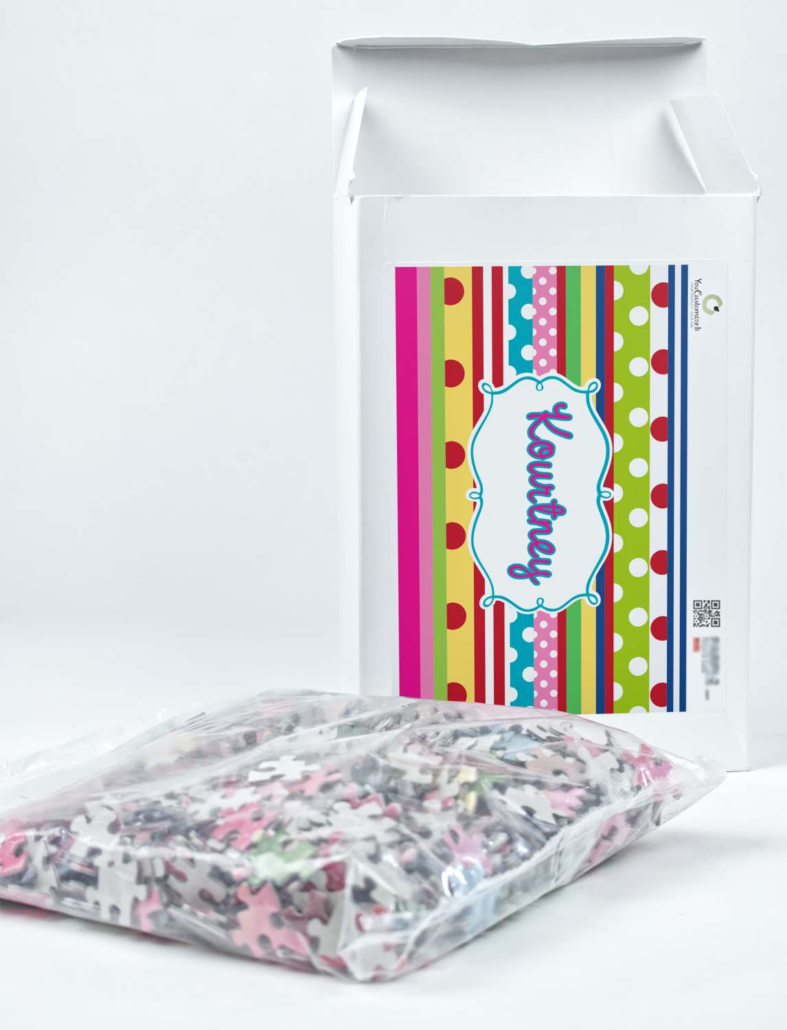 You can also upload your logo or art that you or your kids drew. To create more challenging jigsaw puzzles, you can create a pattern from with your logo or artwork. You can also add other elements such as text or personalization.