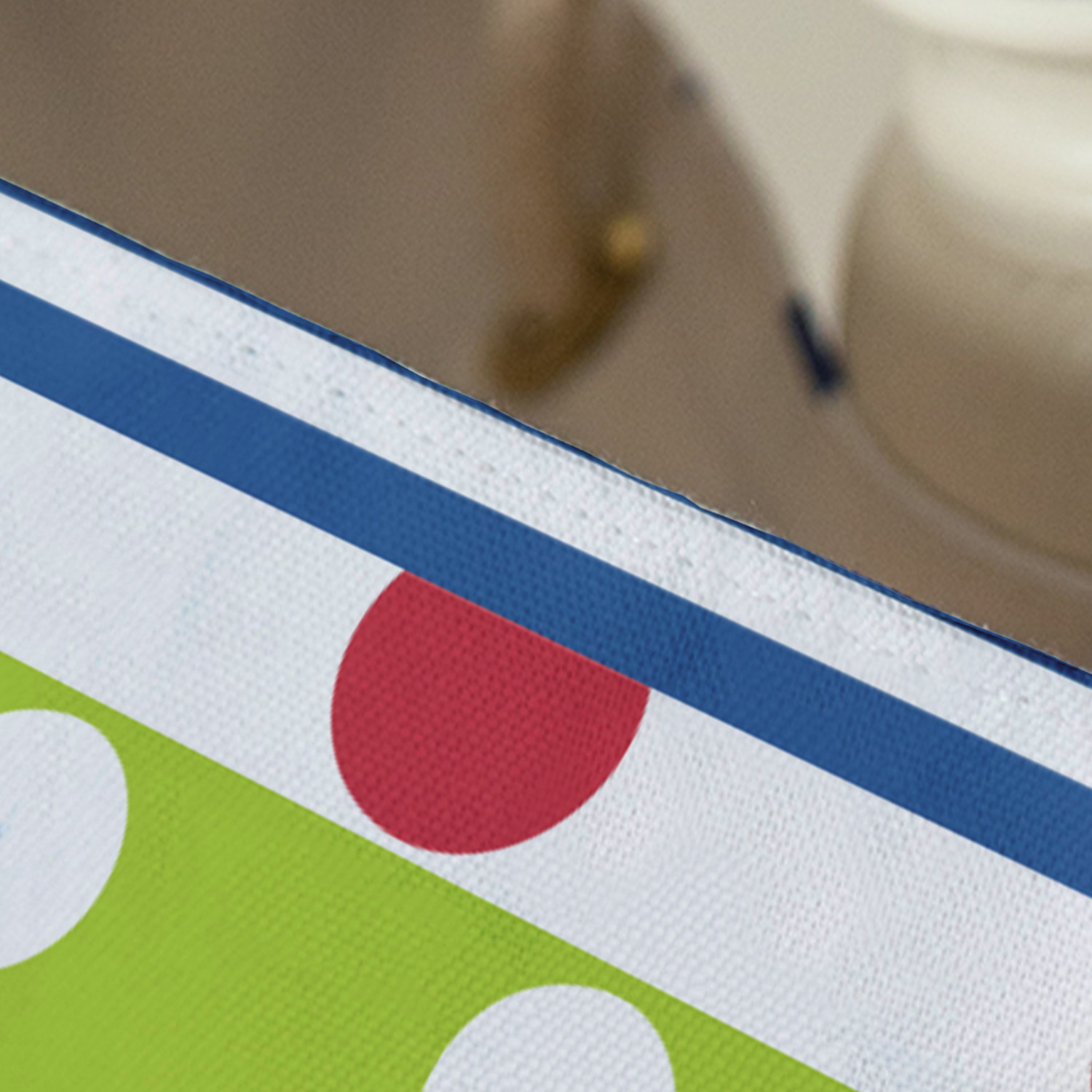 These large totes are handmade i.e. printed, cut and sewn right here in the USA. The canvas like material is printed using dye sublimation; the fabric is then cut and sewn along with a beautiful cream colored lining (to match the rope handles). The brass grommets are then added and the cream colored rope if fed through the grommets and knotted.