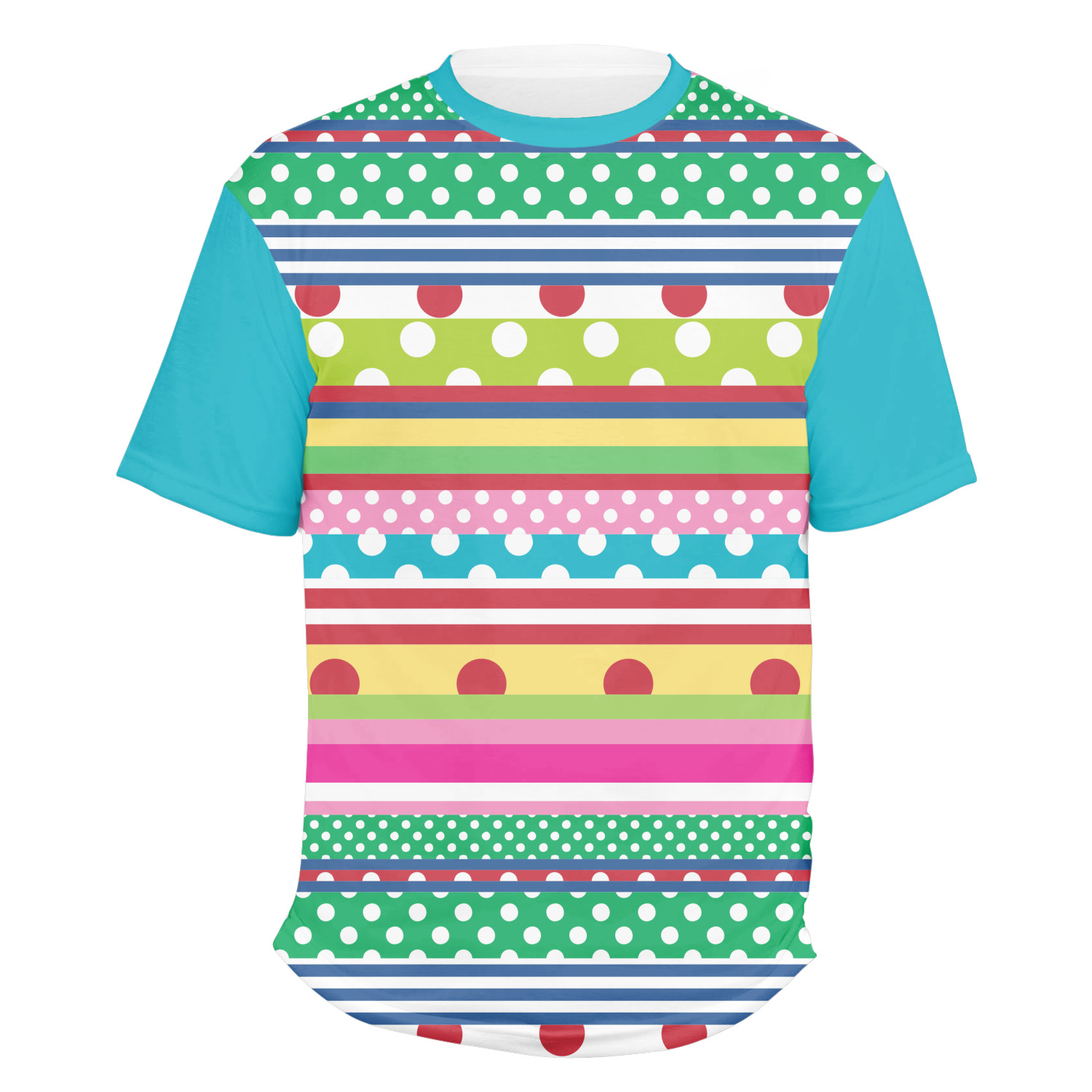 Our mens t-shirts are a lovely jersey knit polyester. They come in 6 different sizes ranging from Small to XXX-Large. These shirts are your basic comfy crew neck t-shirts that look good on anyone. You are able to personalize the sleeves, front, AND back! Isn't that awesome?! Make everything one color or all different. The choice is yours.