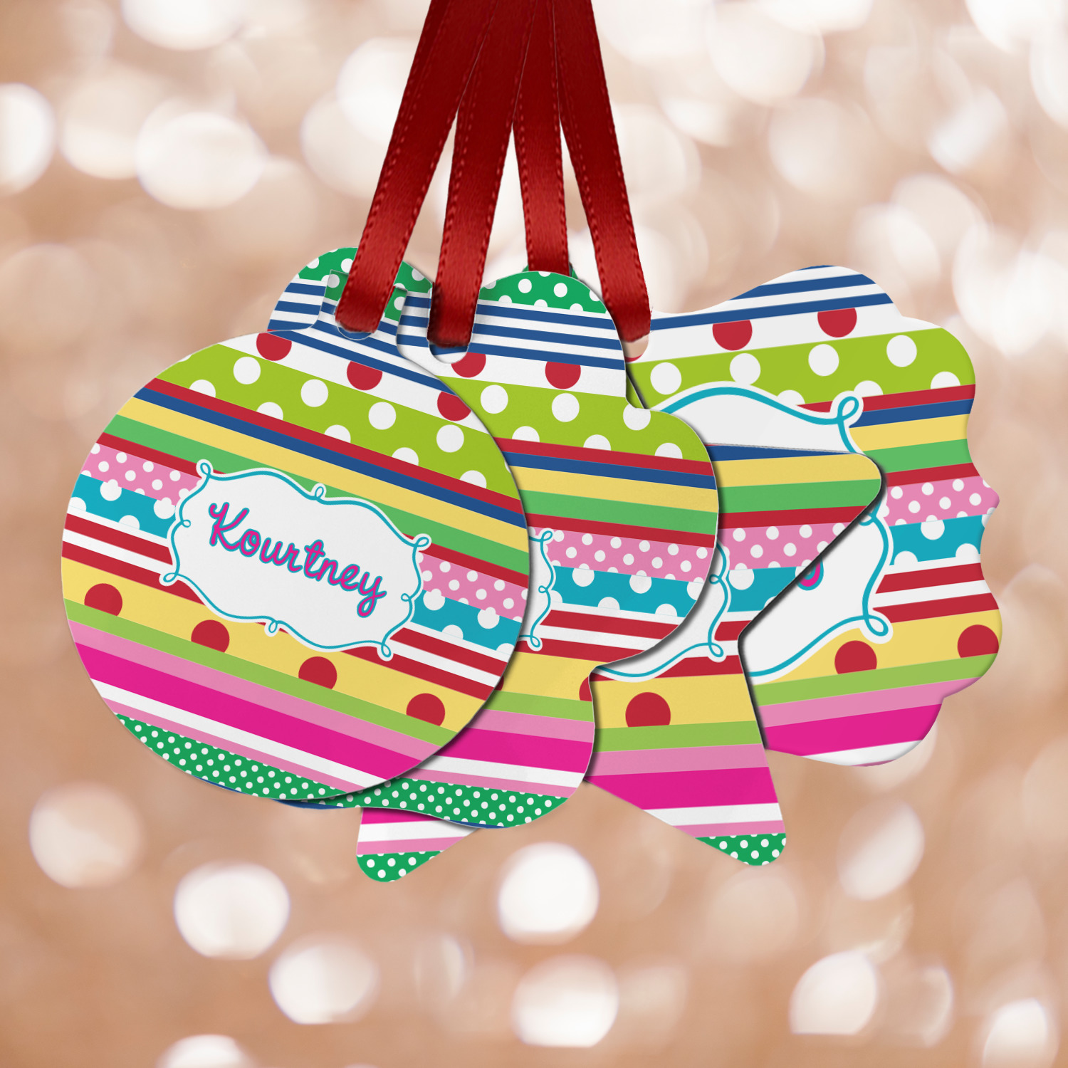 We offer double-sided printing on our personalized metal ornaments all with a gloss finish to make sure your Christmas tree continues to illuminate through the night. We offer 4 different metal ornament shapes to help express yourself or loved ones! Choose from our ball, paw print, star, or frame metal ornaments. Each metal ornament is an aluminum material sure to last you as many years as needed to share the joy and warmth of the holiday. We pair each customizable ornament with a red ribbon to tie your ornament and hang on your Christmas tree!