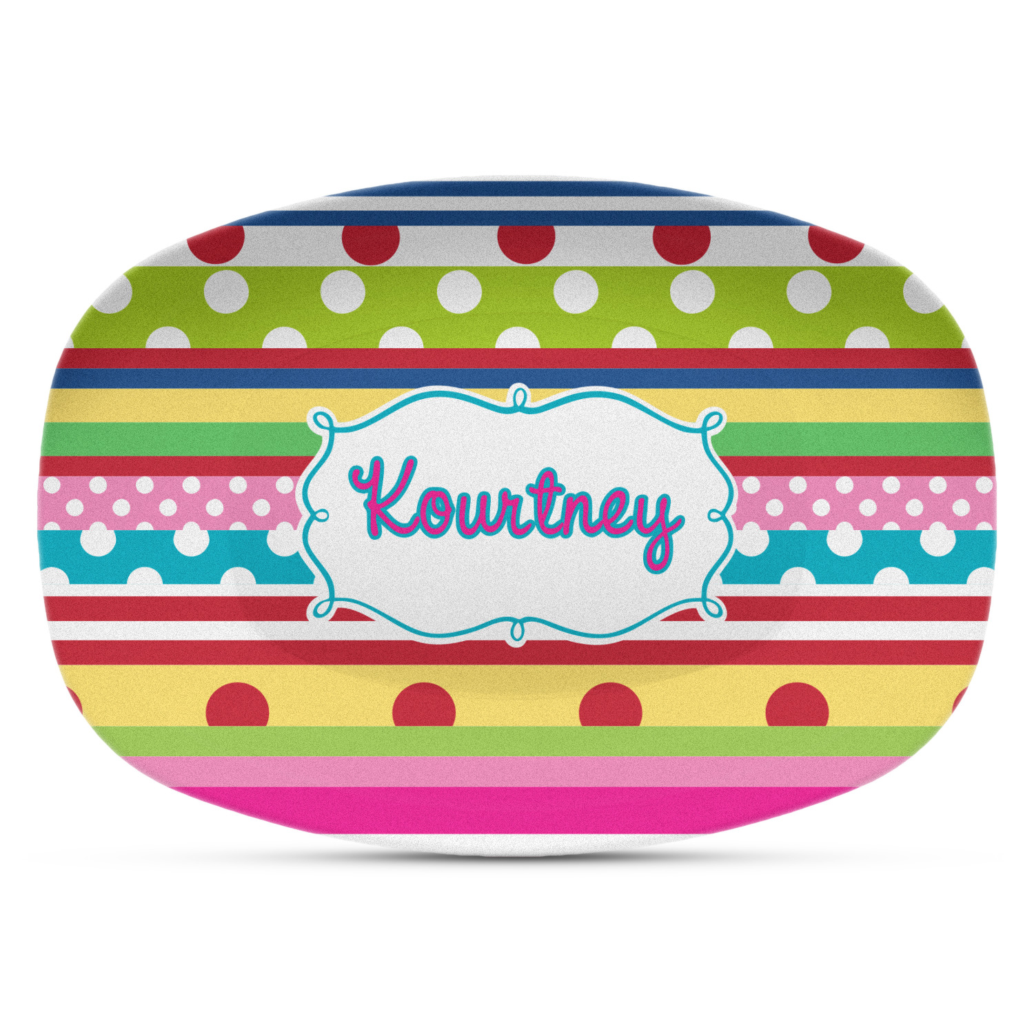 These serving platters are made from a composite, thermo-set, polymer plastic that gives it the versatility, durability, and weight of a melamine platter, without any of the downsides of melamine. These personalized platters, can withstand temperatures up to 250 degrees Fahrenheit, for up to 60 minutes. No harmful chemicals, such as BPA, formaldehyde, and DEHPs were used in the manufacturing of this product. This large serving platter measures at 14" x 10.25", and is spacious enough to hold any of your appetizers or bite-sized desserts. The platter exhibits your personalization across the entirety of its front.