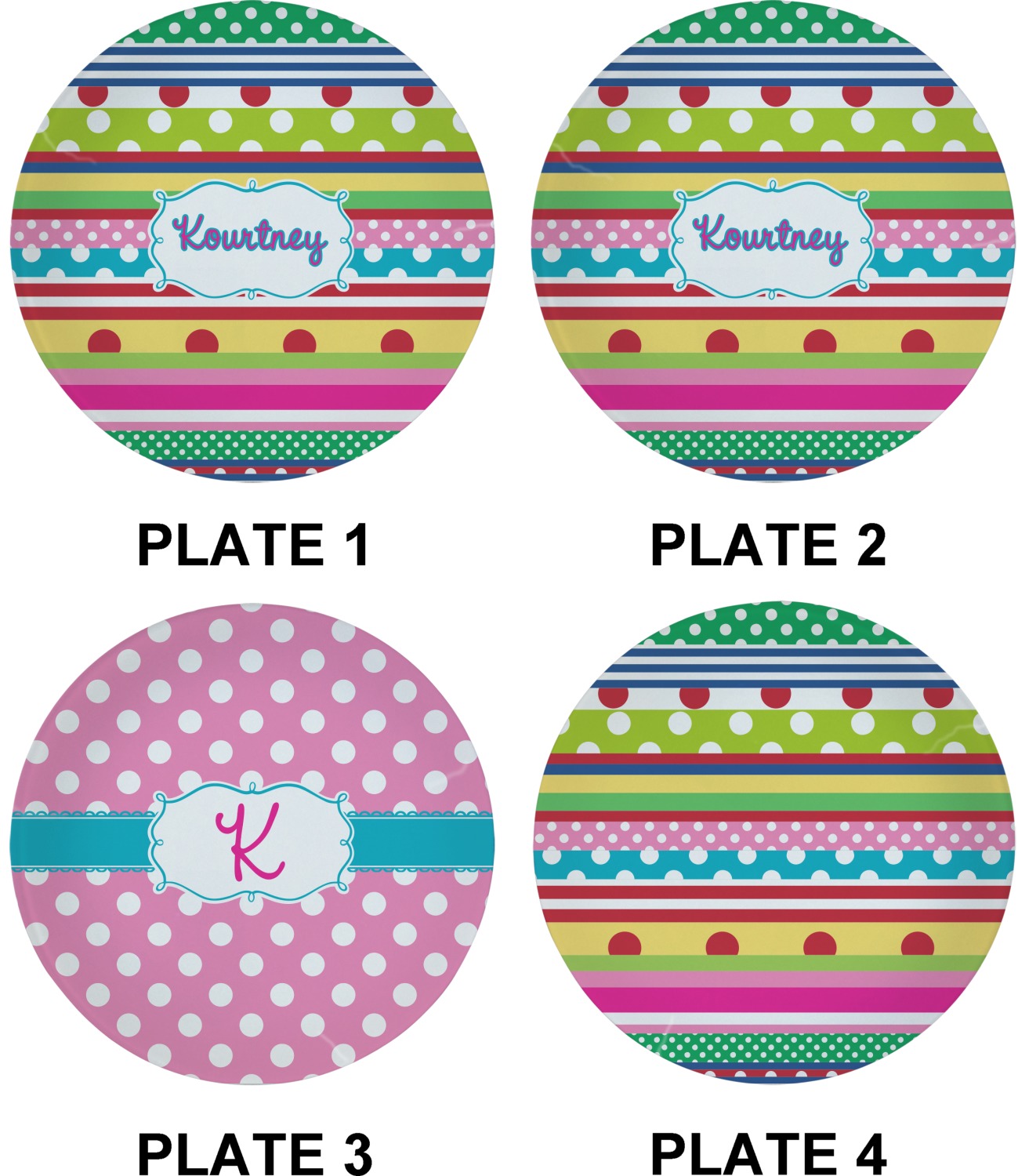 With a of designs and patterns, these plates are completely customizable. Choose a foodie design, complete with red-hot chili peppers, or go classic with stripes or plaid. Include your monogram or family name to make sure these plates never get lost at parties!