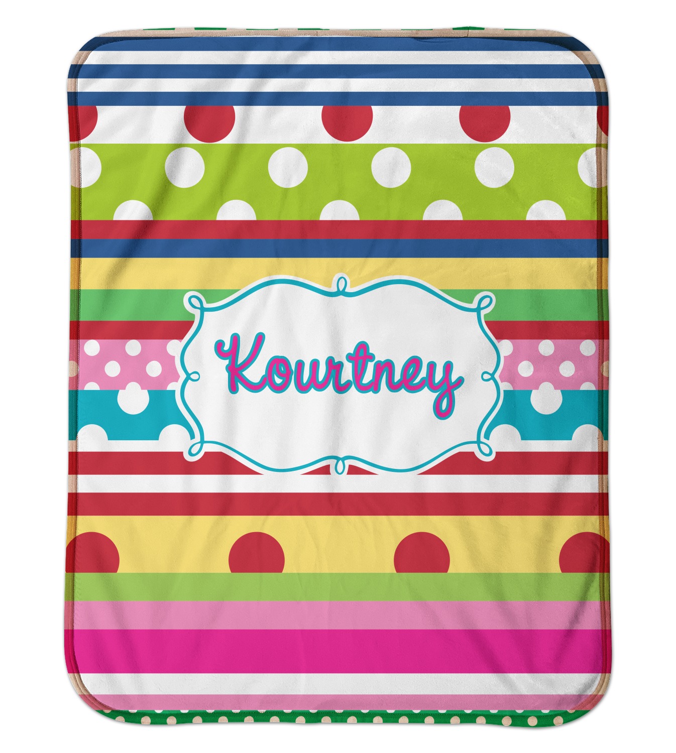 These toddler blankets are made of two different materials; the front side is made of a velvety, minky-like material that displays your customization and is perfect for a baby's delicate skin. The underside is crafted from a fluffy, sherpa fleece, and bears a classy, tan color. The dual texture gives your baby added comfort, as both sides are incredibly soft and plush. The corners of this blanket are rounded, and the ribbing of the blanket is a tan color, which complements the sandy color of the sherpa fleece. At approximately 30 by 40 inches, this custom baby blanket is the perfect size for babies and toddlers.