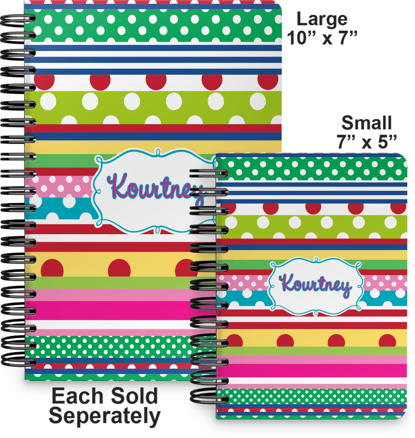 This spiral notebook includes 75 sheets of thick, ruled paper. The front and back of this custom notebook is made of a robust, laminate, plastic covering. We print your personalization on these two panels, underneath a glossy finish, which emphasizes the colors of your design. The two panels and the sheets of paper are held together by a sturdy, black coil. The paper within your bound notebook is perforated for easy, clean tearing.