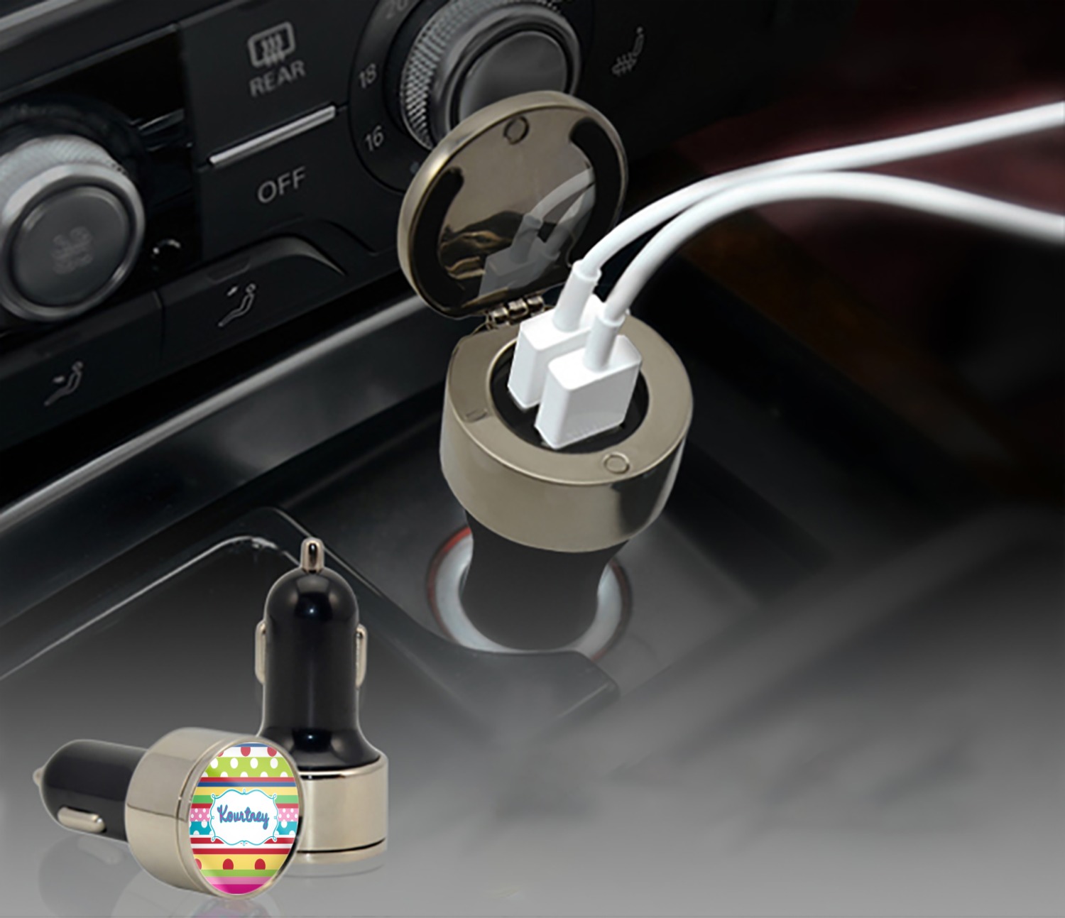 Incorporate a custom accent to your travels with this USB car charger! Our USB car adapters strike the perfect balance between style and functionality and make such practical gifts for loved ones!