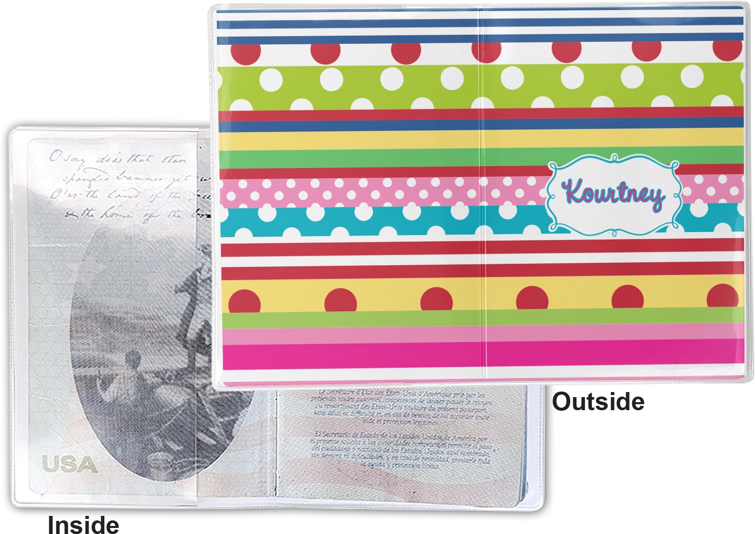 This cover is made of a sturdy clear vinyl with a personalized vinyl insert inside. There is a large and a small pocket on either side to hold the covers of your passport easily and firmly. The passport holder is approximately 7.5" x 5.25", the perfect size to snugly fit your passport. This slim cover is the perfect way to protect your passport without being one more bulky item you have to carry.