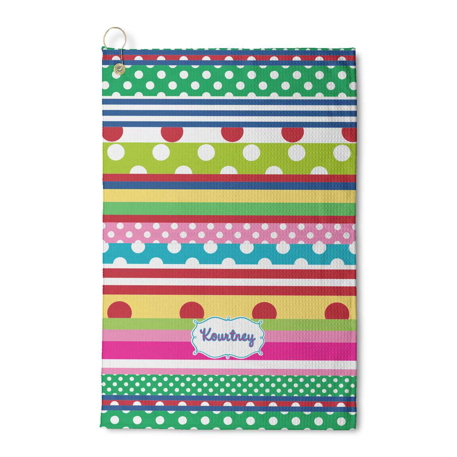 Trying to choose which golf towel is right for you? Our standard golf bag towel (one size - 13" x 18") is a terry loop style towel with a partial print that is great for normal, everyday use. If you are looking for a poly-cotton blend full print towel look at our standard full print golf towel - available in 2 sizes - small (11" x 18") and large (15" x 25"). If you prefer the look and feel of a soft microfiber towel our microfiber golf towels are a great option and allow you to polish your club and ball surfaces to a nice sheen. The microfiber golf towels are also available in 2 sizes - small (11" x 18") and large (15" x 25"). Lastly the waffle weave towel (available in a single size - 16" x 24") is a fantastic option to give you some texture on your towel to allow for more scrubbing and cleaning when playing in rougher, wetter environments. All of these options are able to be washed with bleach to get them clean and will retain their bright colors.