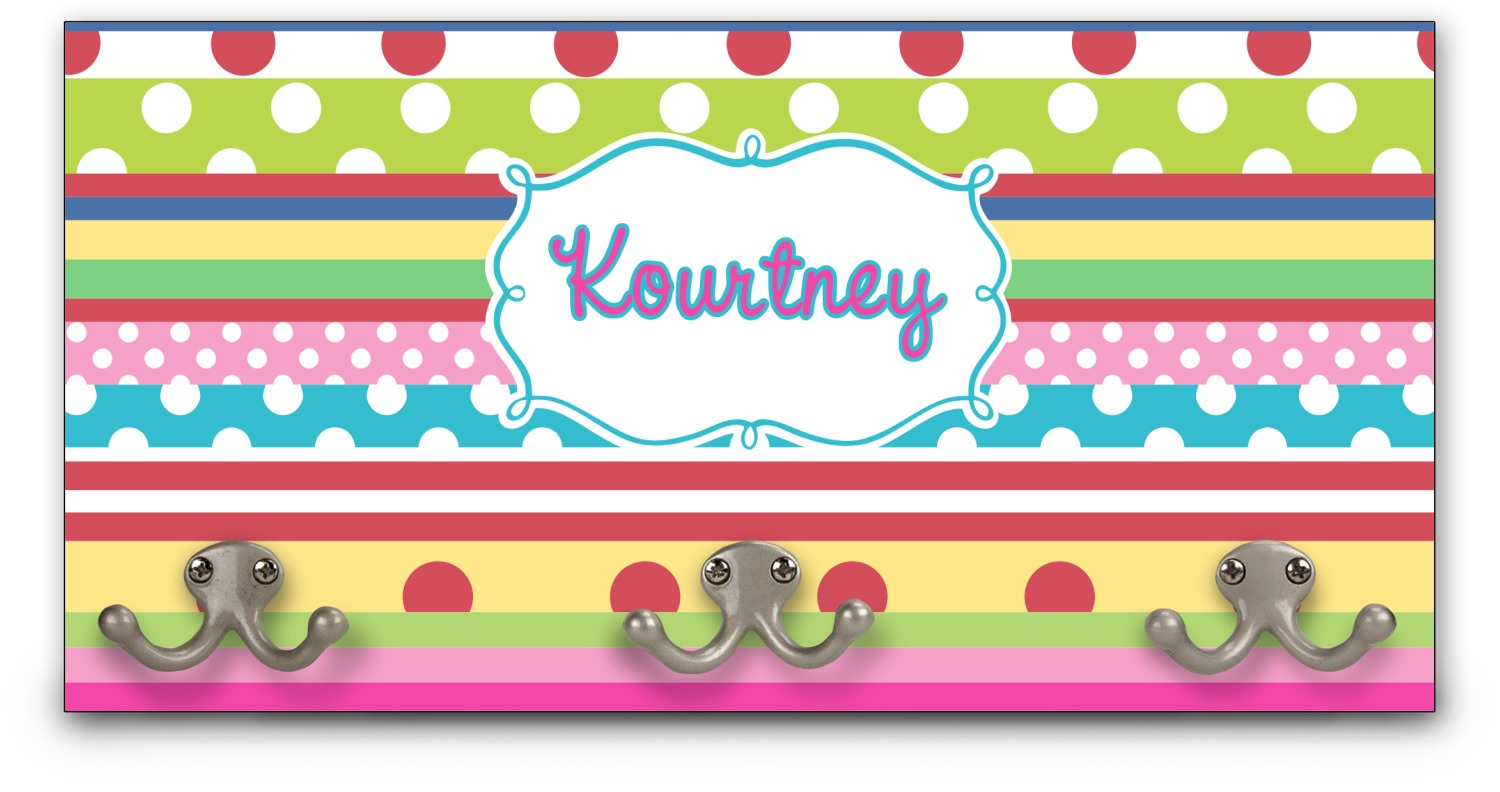 This coat rack is the perfect way to add some personality to your wall or entryway. The board is made of a strong maple that is approximately 16" x 8". The three 2-prong hooks are a sturdy metal that have three screws attaching them to the board. Your design is printed right onto the front of the board while the back and sides are a simple black.