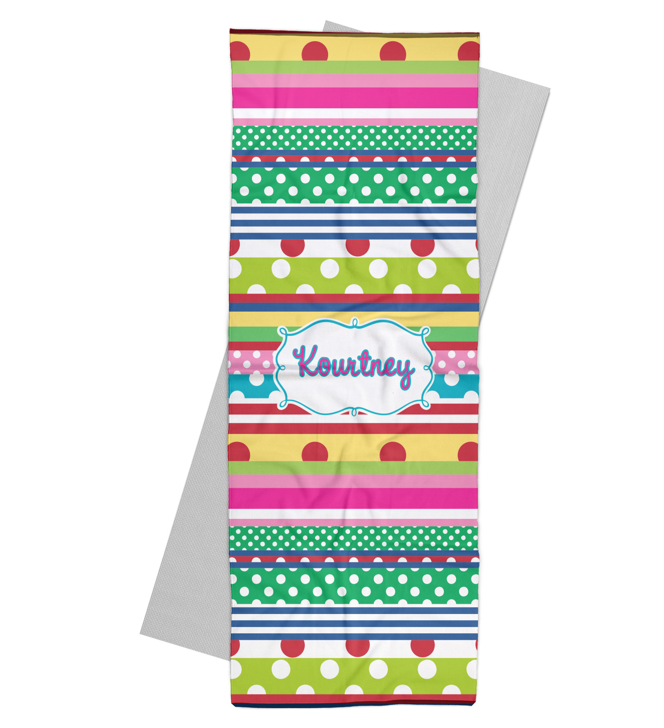 This gorgeous yoga mat towel is printed with your own design on the front with a grey colored back. They are the perfect thing to take with you to a yoga class where you use community mats. No need to worry about someone else's sweat left behind! They also give you a little extra grip on your mat, especially for when you do a hot yoga workout! They measure at approximately 24" W x 68" H. They are the perfect thing for your regular yoga classes or workouts.