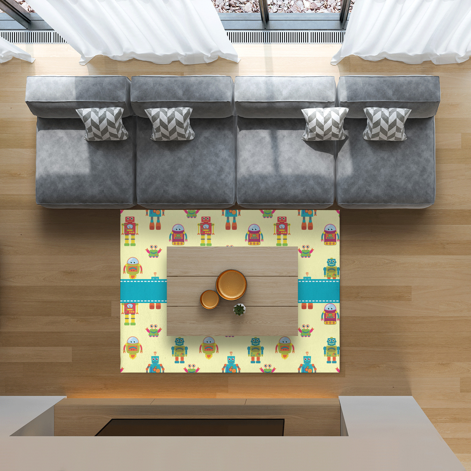These whimsical robots will delight your little one and might even inspire their imagination! This pattern is versatile and perfect for a boy or girl. Robots of various sizes, shapes, and designs fill this pattern with fun and lots of color, which makes decorating a breeze.