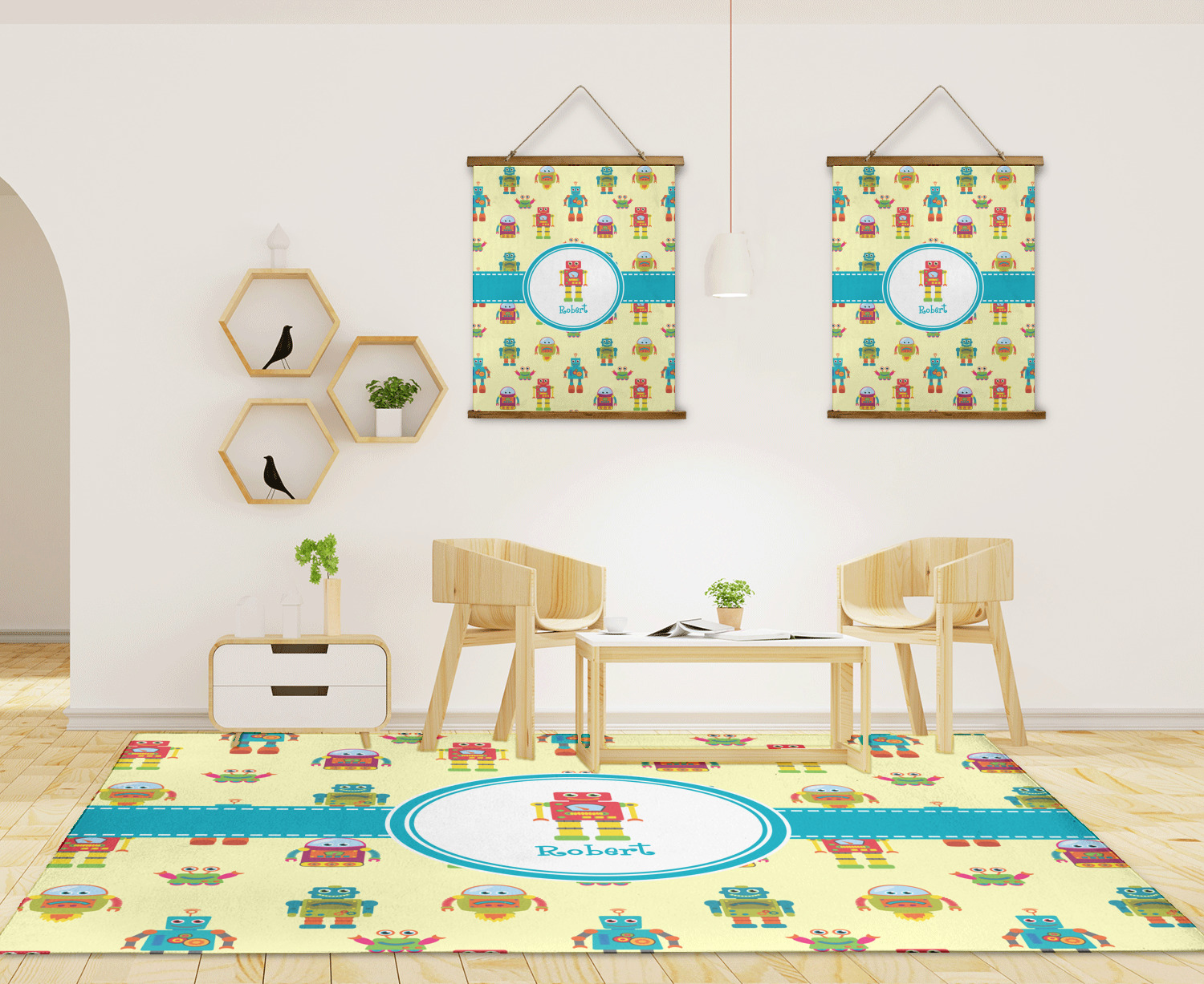 These whimsical robots will delight your little one and might even inspire their imagination! This pattern is versatile and perfect for a boy or girl. Robots of various sizes, shapes, and designs fill this pattern with fun and lots of color, which makes decorating a breeze.