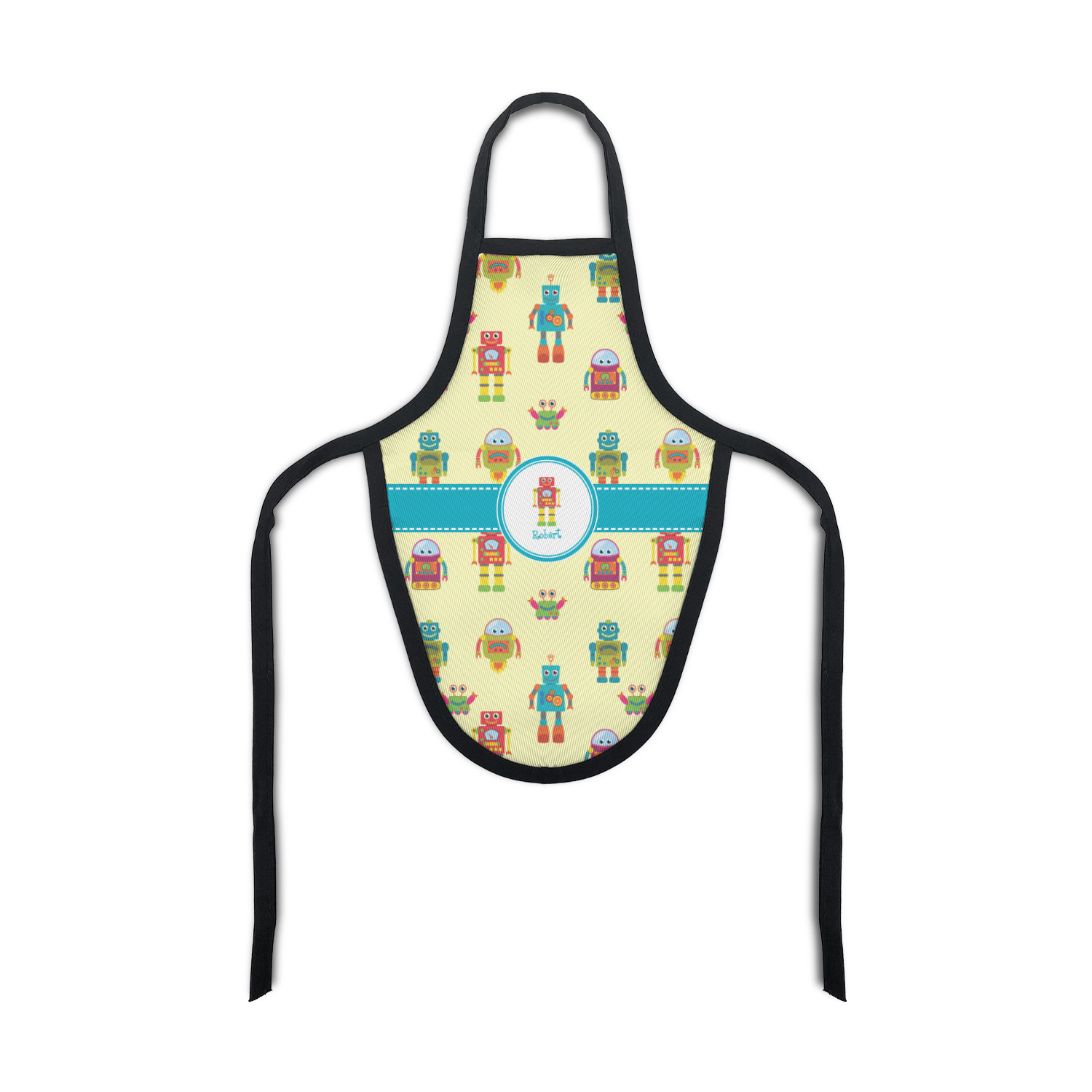 A bright blue band trimmed with a white stitch design add a pop of color. A white circle label trimmed in the same bright blue color allows for personalization of your choice.
