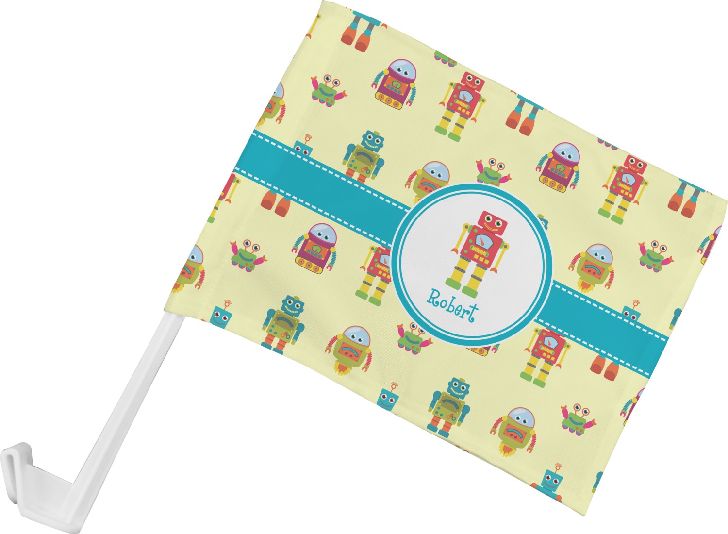 Our personalized flags are made from a durable, yet lightweight cloth that will proudly bear your logo or design of choice, while withstanding the outside elements. We have two size options - 8" x 11" and 11" x 15". Both come with a flag pole which includes a clip that secures the pole to the side window, whether it is rolled up or down. The flags are printed on both sides to display your design from all directions.