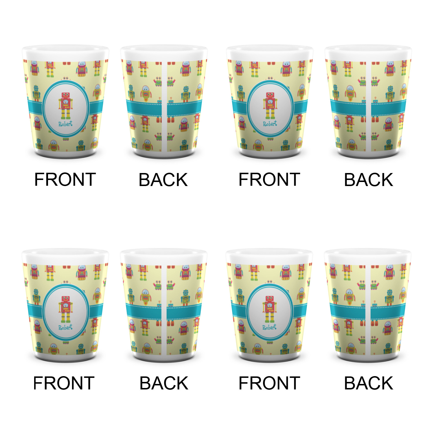 Made from ceramic these shot glasses are printed in full color with the design of your choice. These are a standard 1.5oz size and stand 2.25" tall. Available in a full white ceramic or a two-tone with a black color inside the shot glass. Buy a single or a set of 4, all of which can be designed separately to get you just what you want and need.